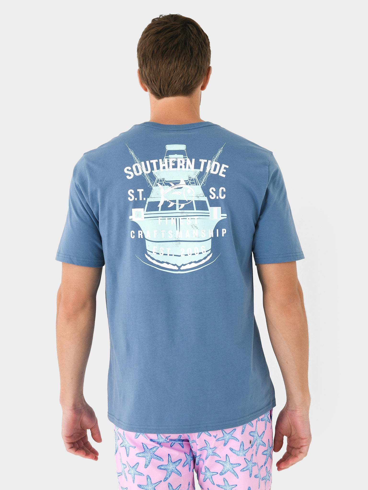 A soft cotton t-shirt designed with a custom Southern Tide charter boat graphic.