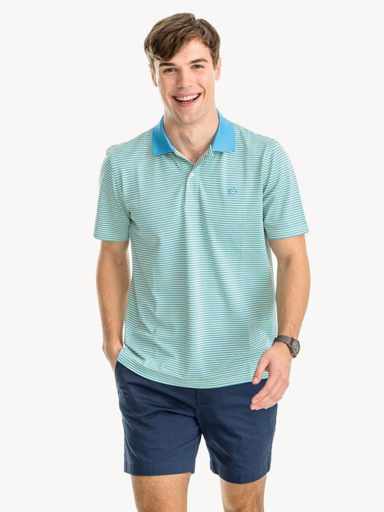 The Southern Tide Men's Fort Fredrick Stripe Performance Polo is ready to take on 18 holes.