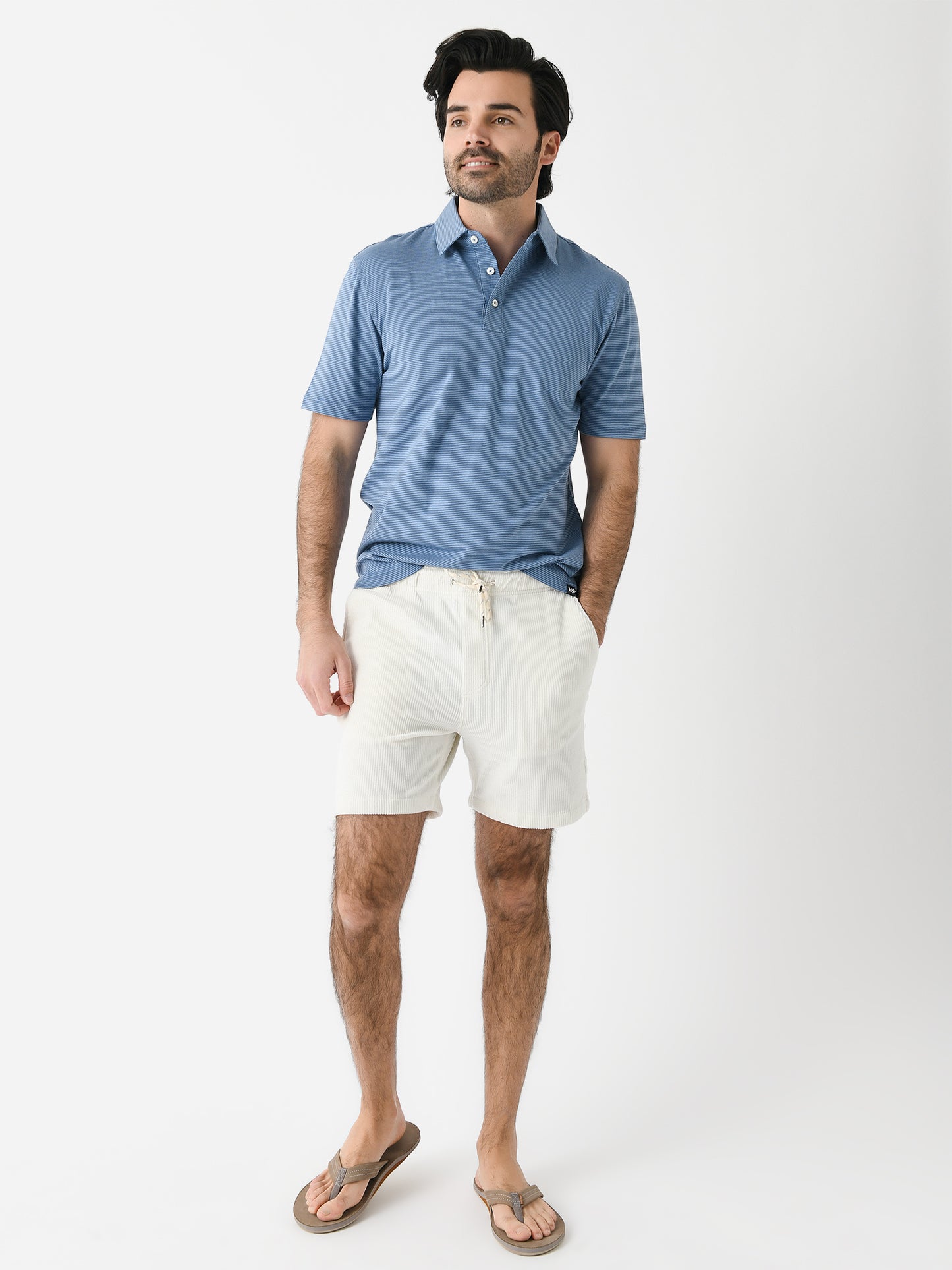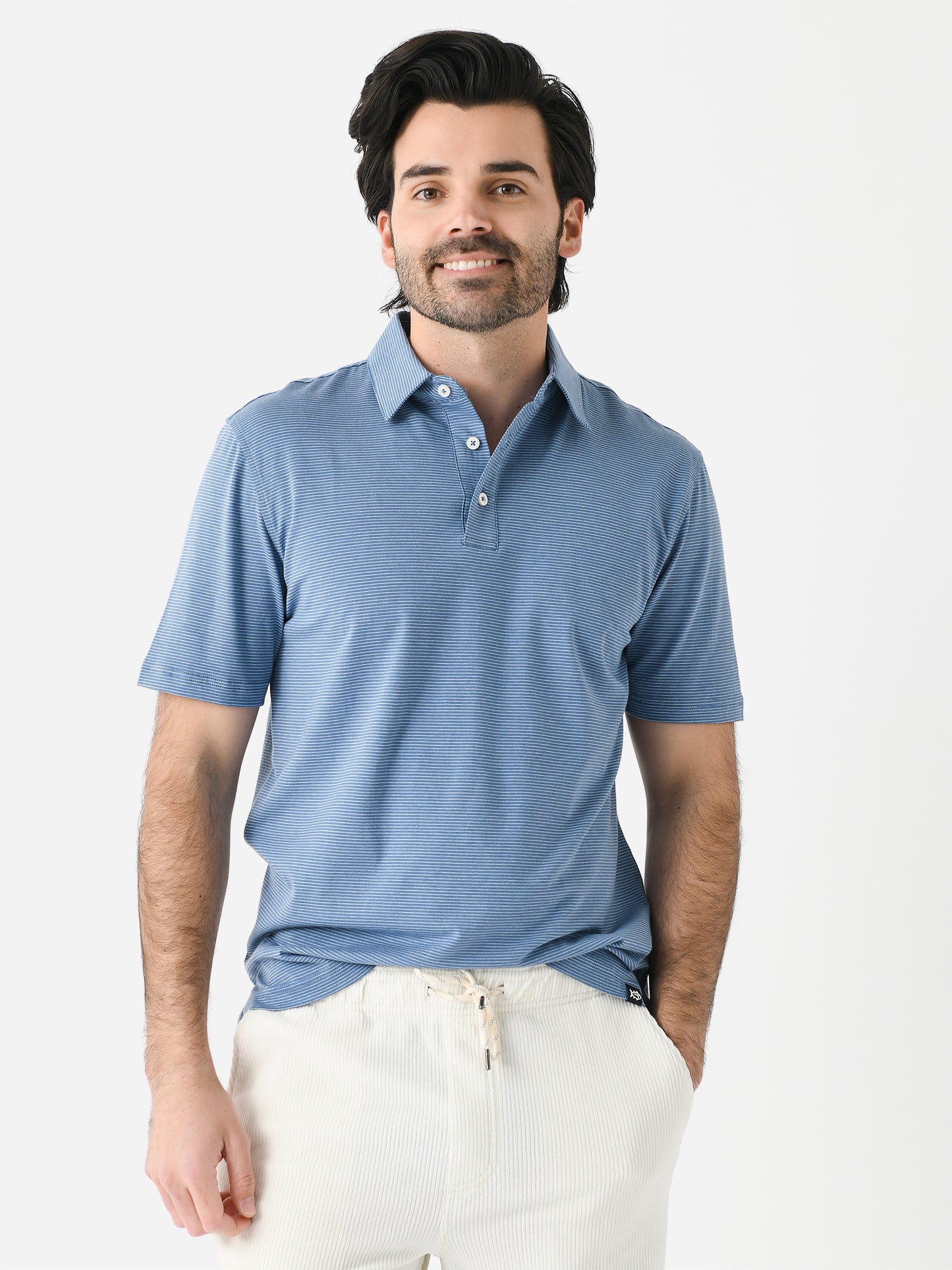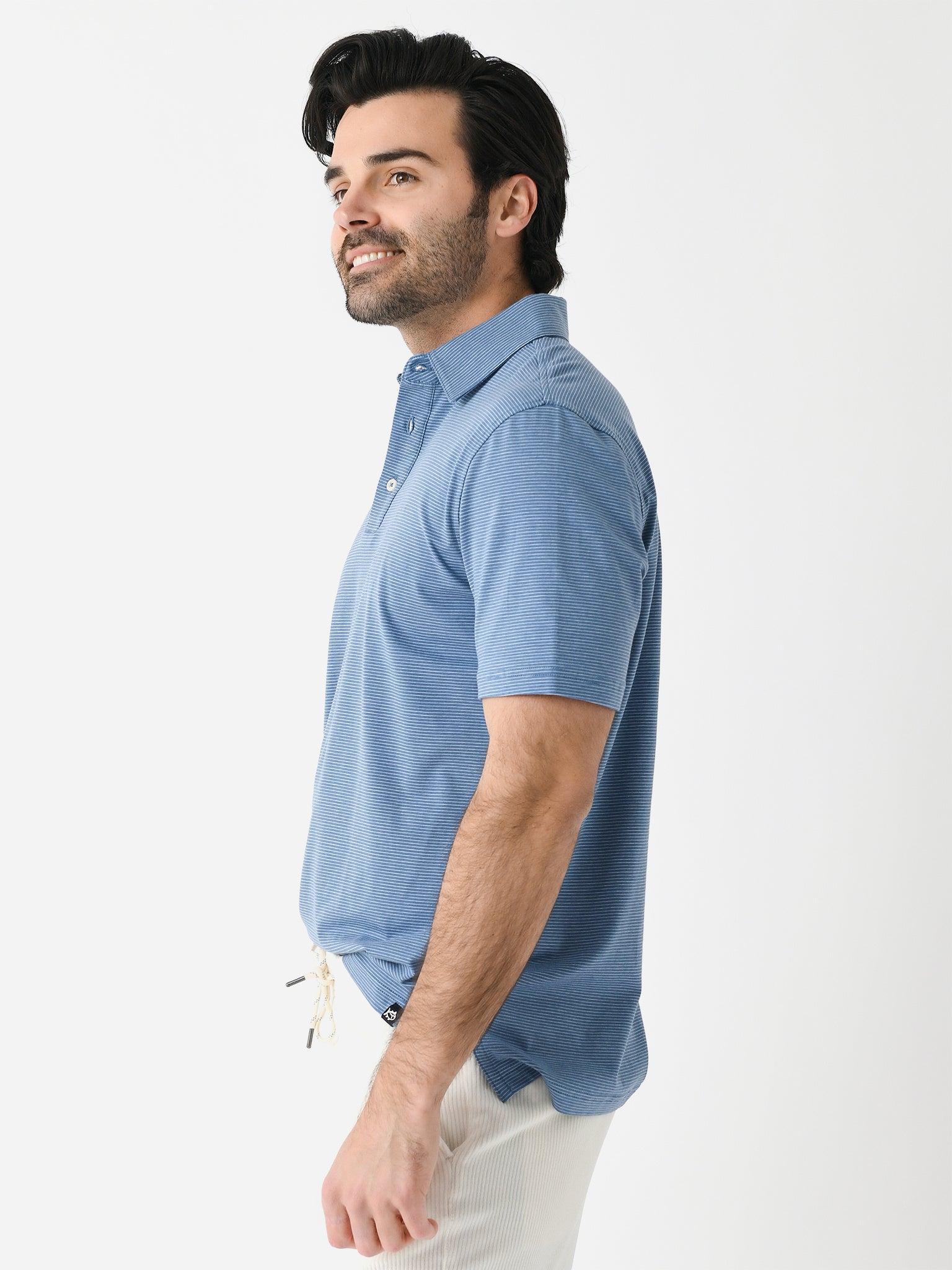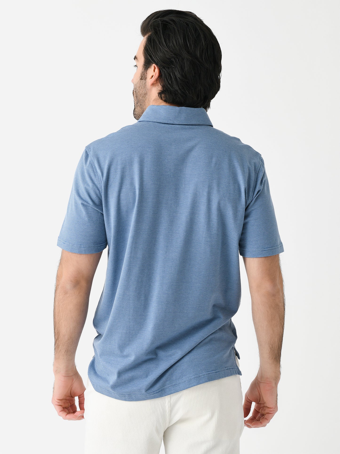 A classic striped polo with a three-button placket and a sun-washed finish.