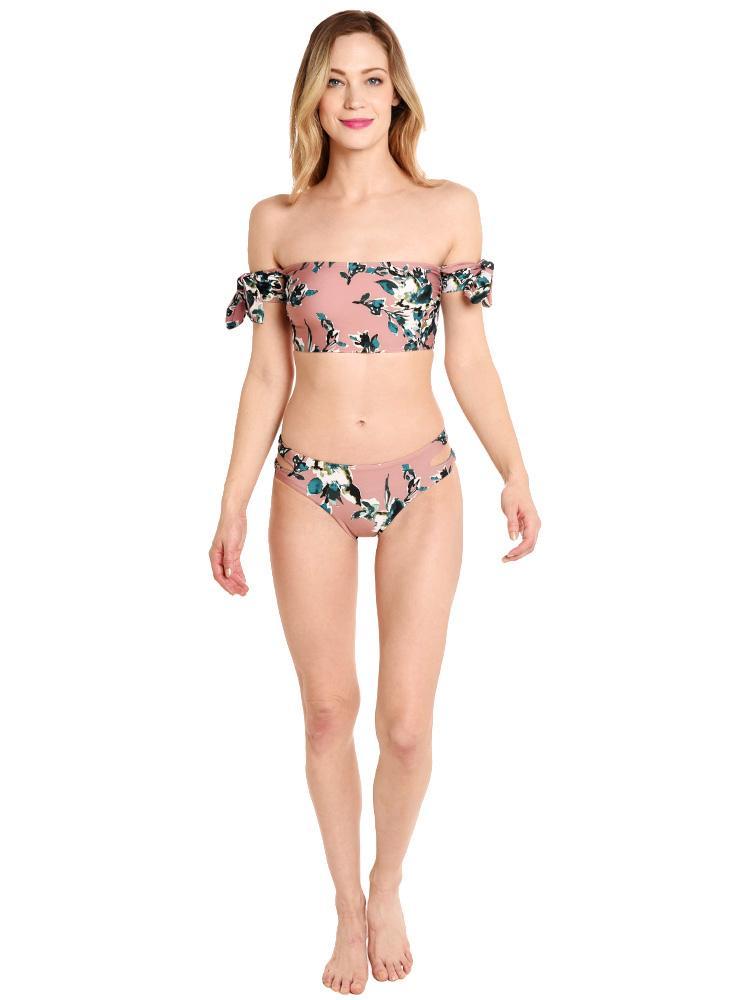The Splendid Mills Watercolor Bandeau is right on trend with and off the shoulder neckline.