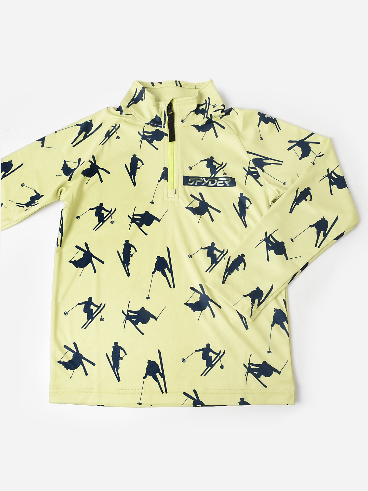 A half-zip pullover made from soft double-knit fleece with a custom Spyder print.