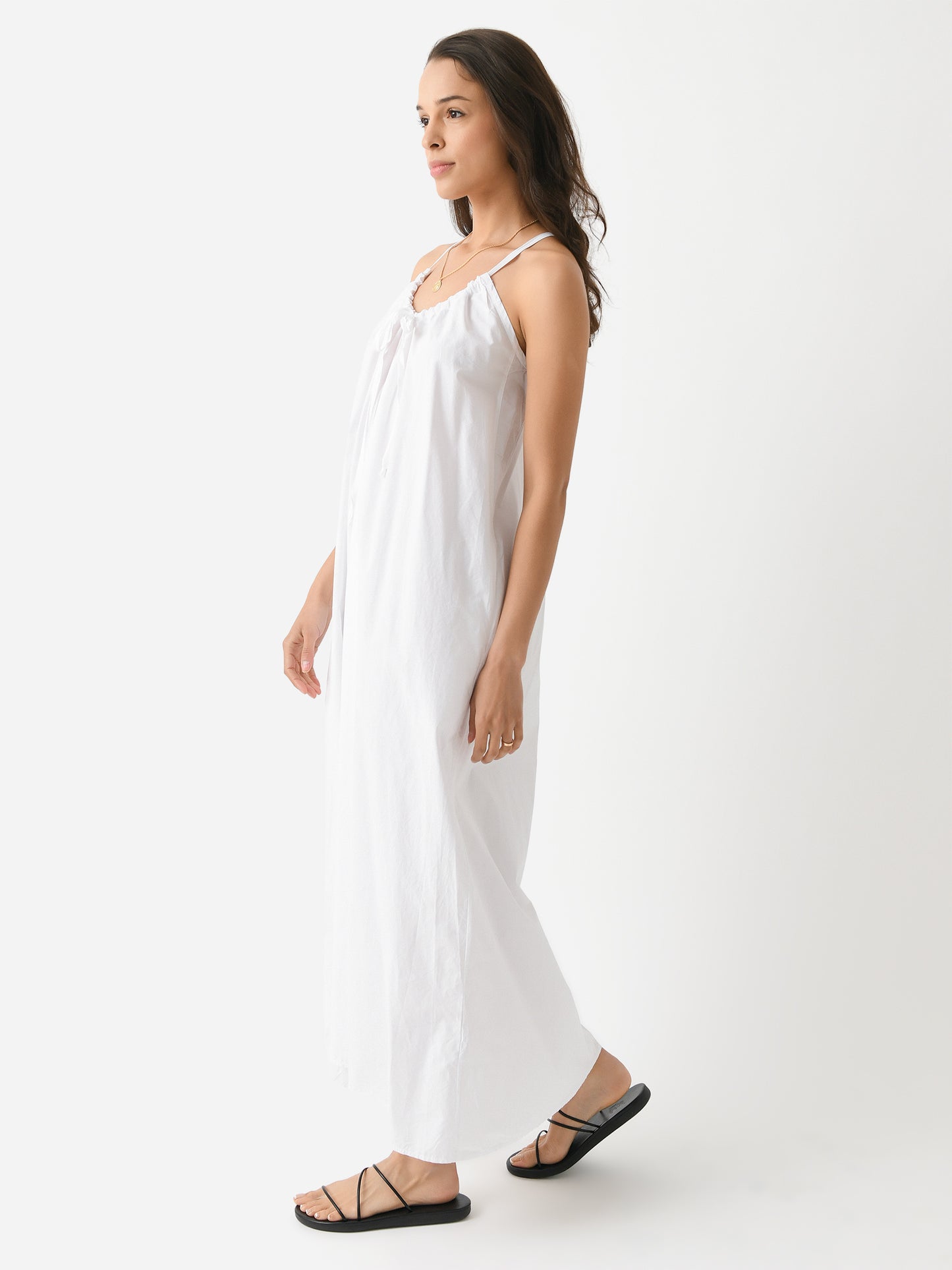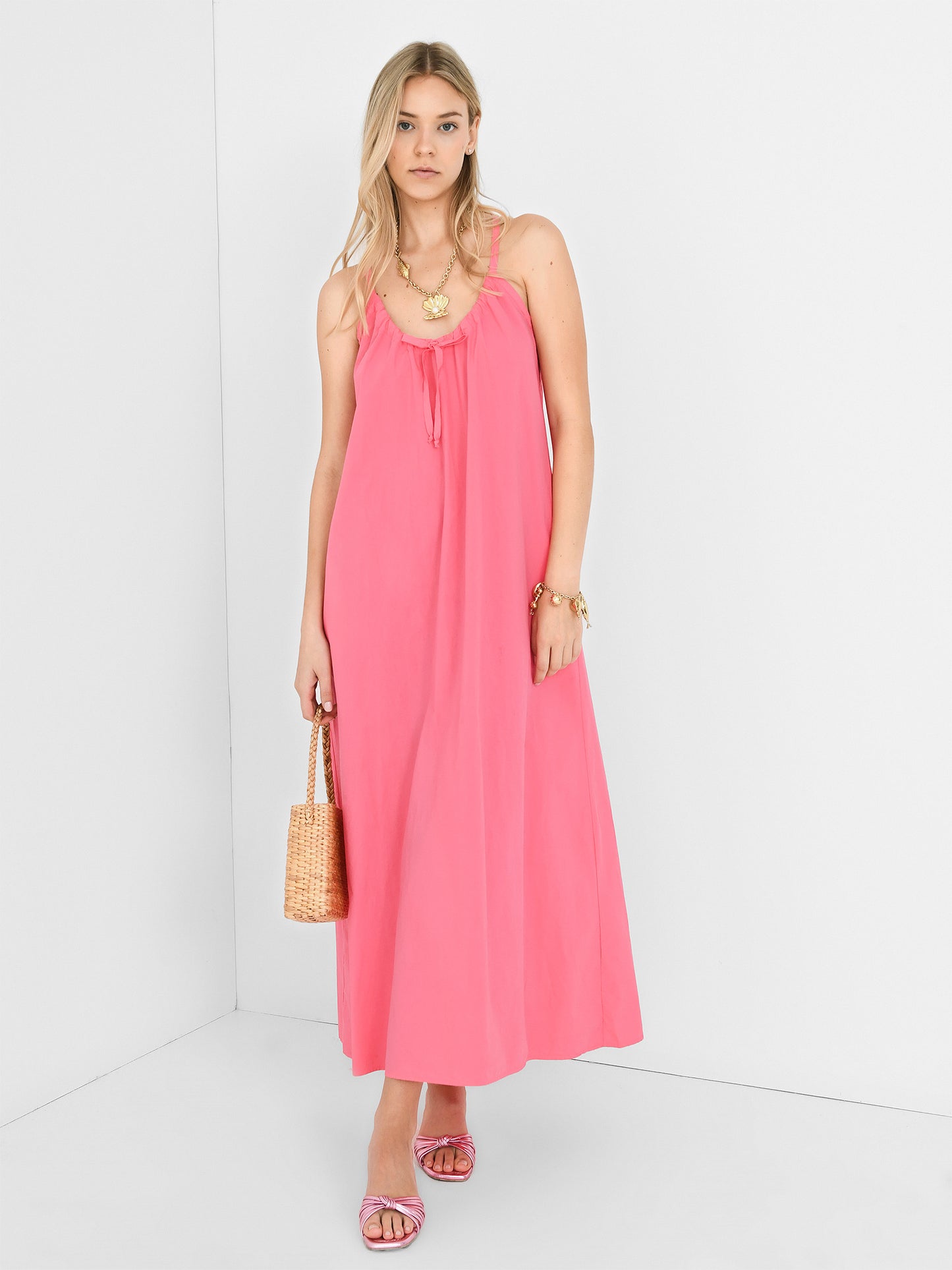 A flowy maxi dress made from lightweight cotton with an adjustable neckline.