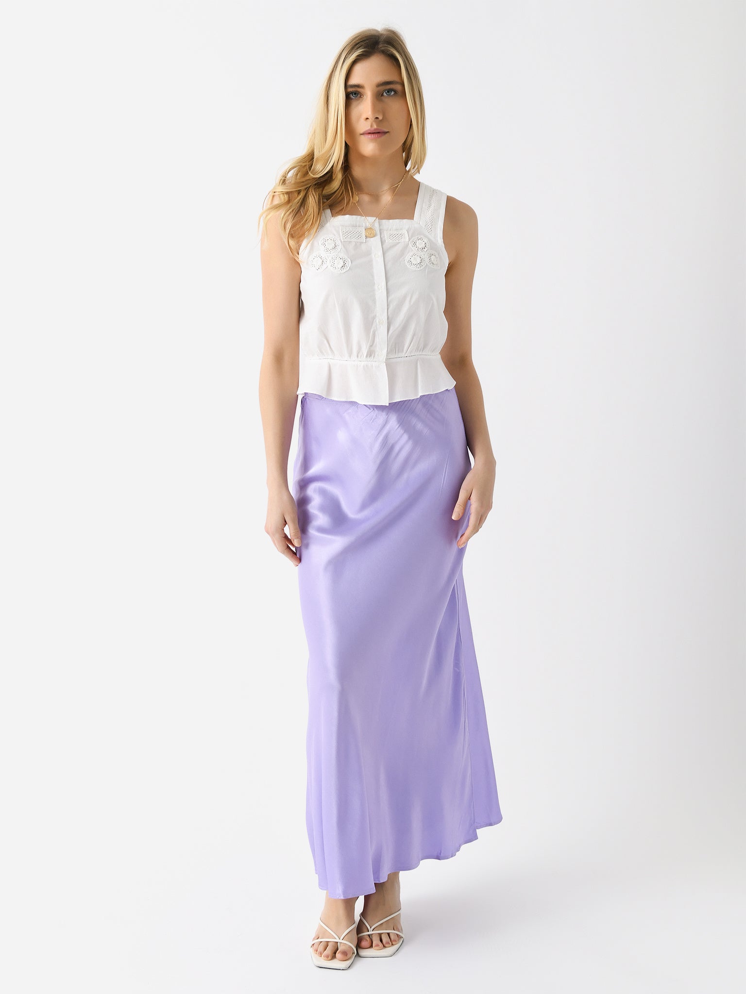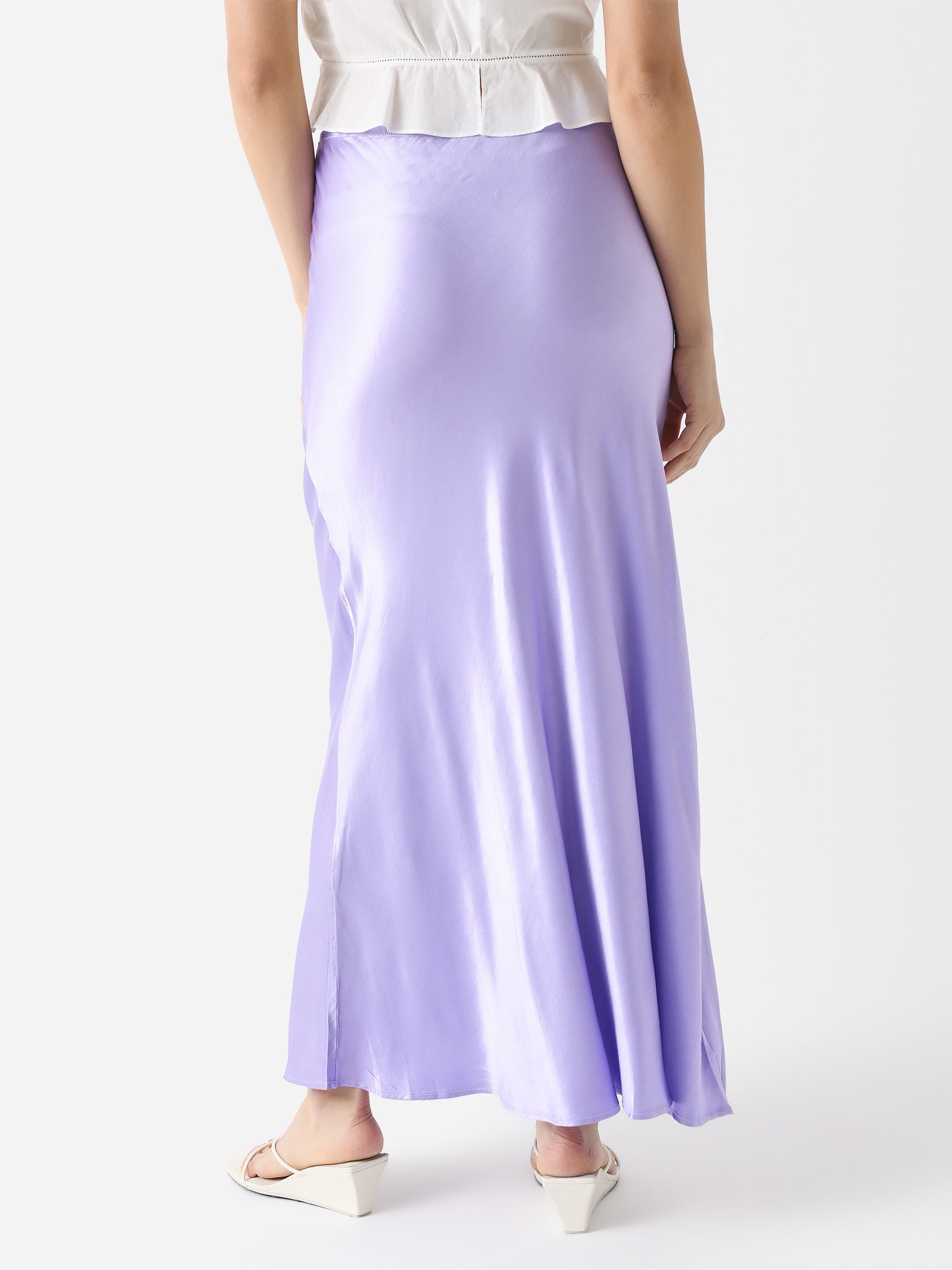 A maxi-length bias-cut skirt made from silky rayon.