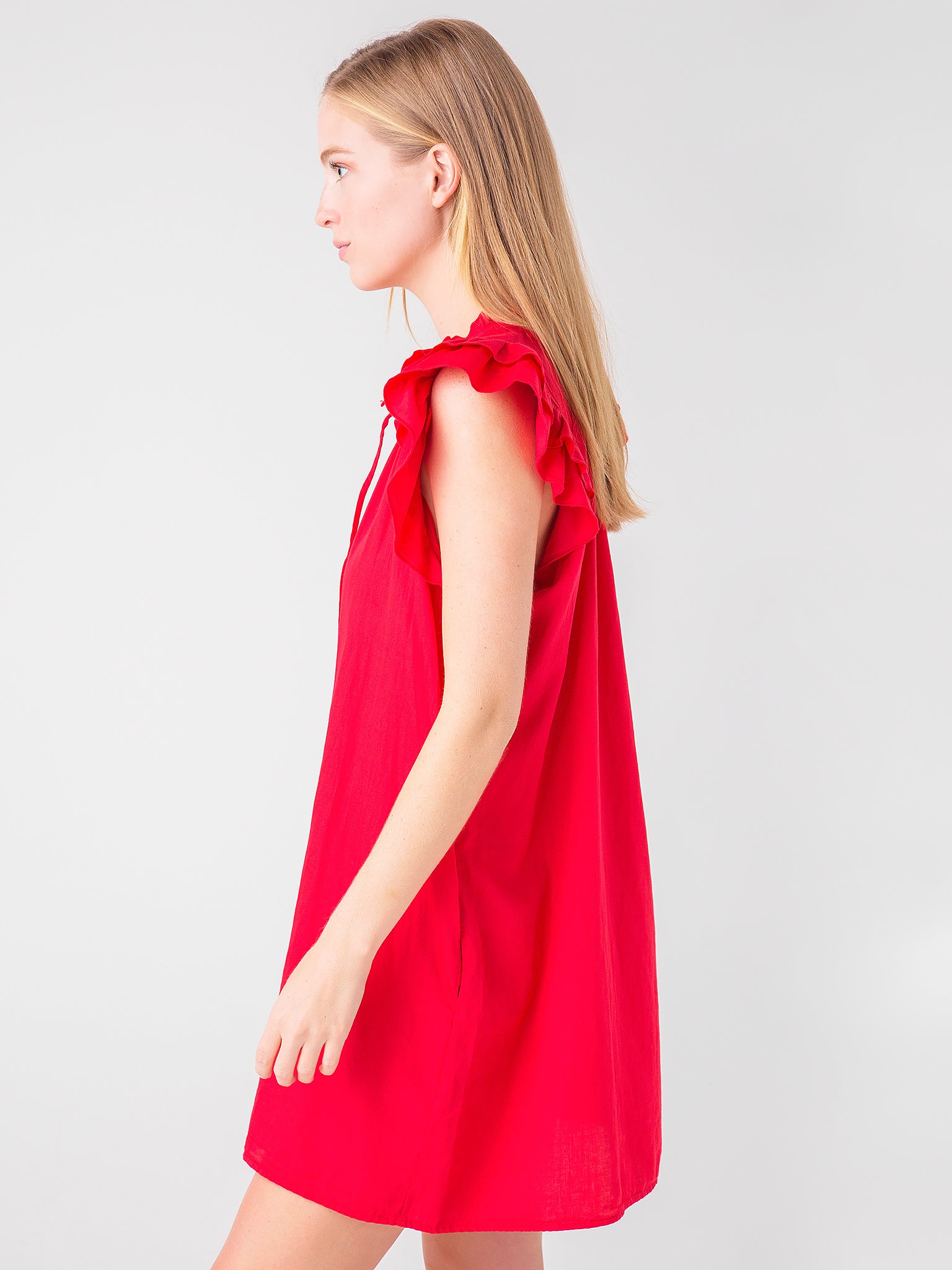 - Split, V-Neckline with Ruffle Detail with String Tie Detail