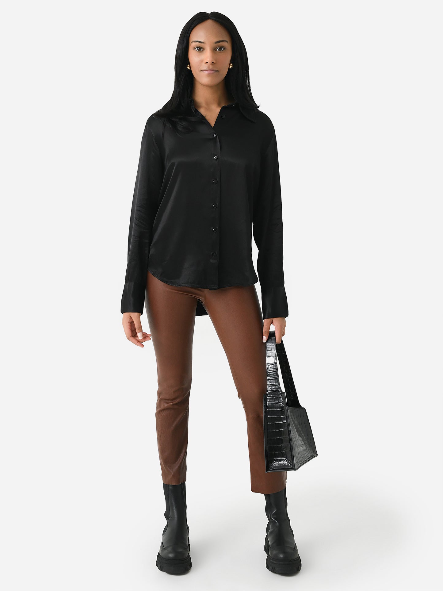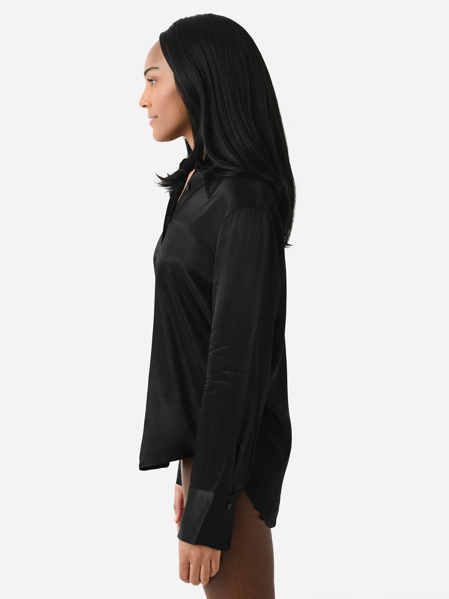 A classic button-down shirt made from silky rayon fabric.