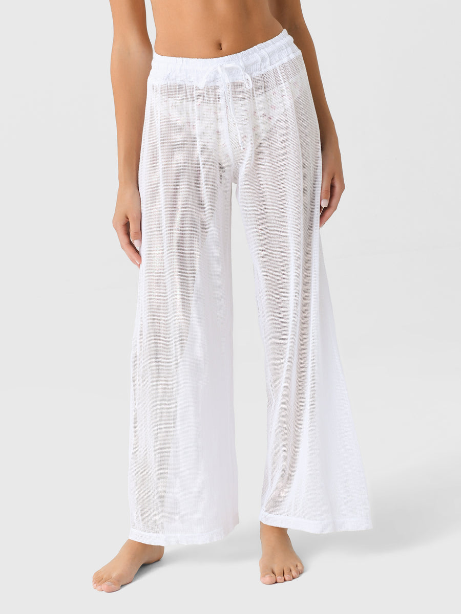 Elastic Waistband Adjustable Drawstring Wide Leg Silhouette Mesh Fabrication 100% Cotton Classic Fit Model is wearing size Small pant. Model's Measurements: Height: 5'10.5" | Bust: 32B | Waist: 25" | Hips: 36.5" | Dress Size: 0-2 (US)