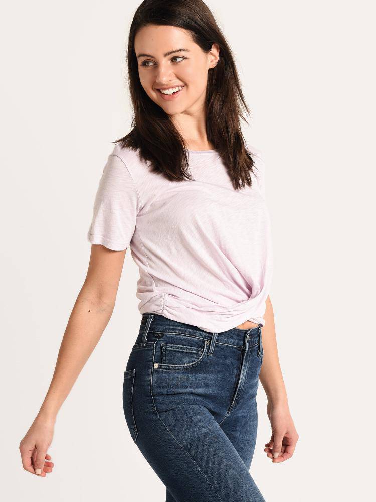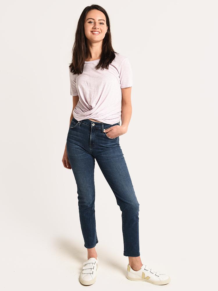 - Styled with Citizens of Humanity jeans Style # 1778-C989 and VEJA sneakers Style # EL021473. Model is wearing size Small tee and size 25 jeans.