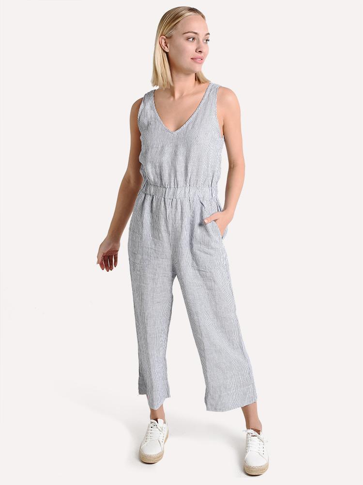 Stateside Women's Sleeveless Stripe Linen Jumpsuit