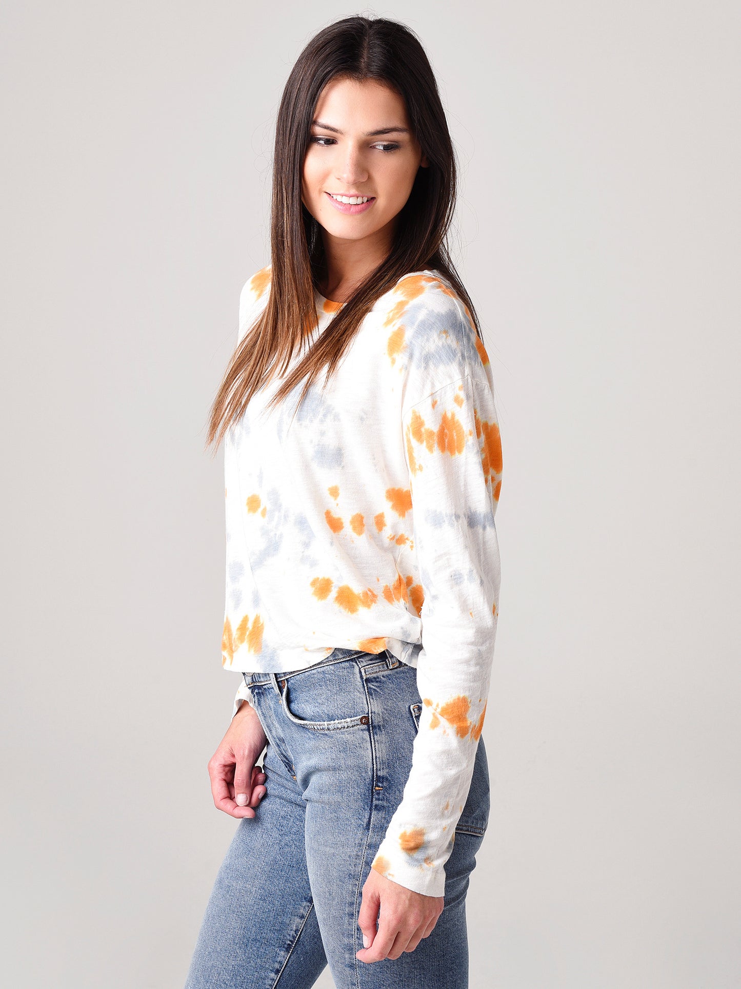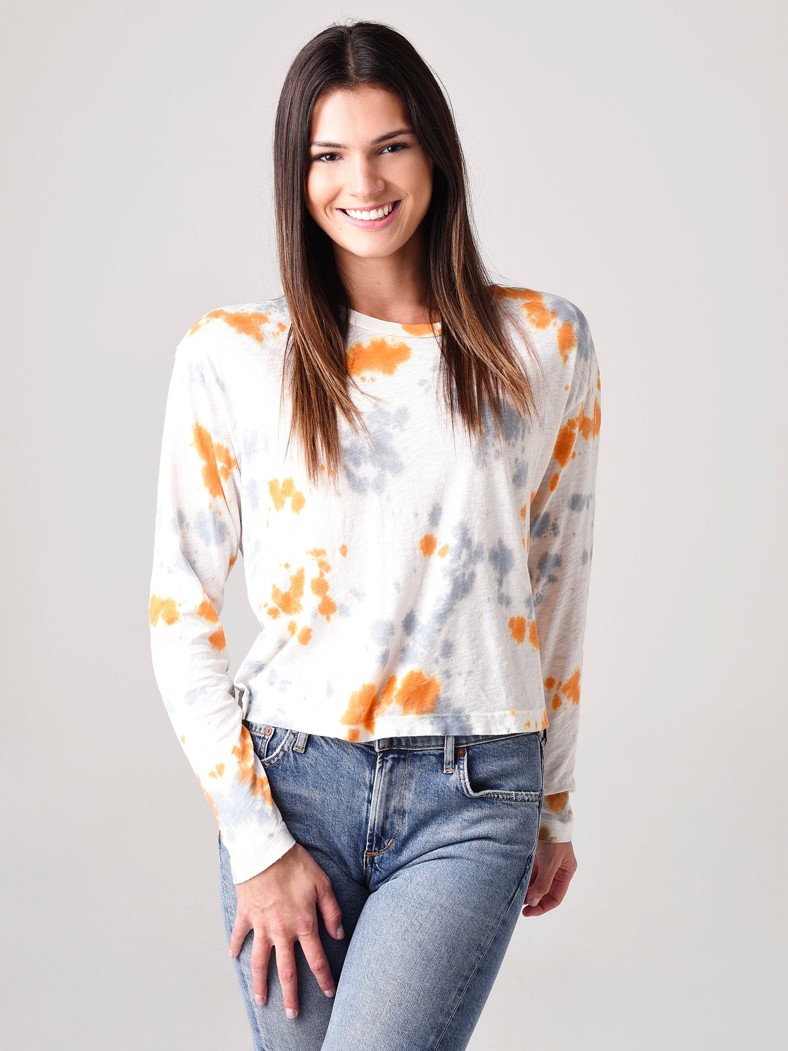 Get a chill look for the Fall in the Stateside Women's Slub Tie-Dye Long Sleeve Boxy Crew Tee.