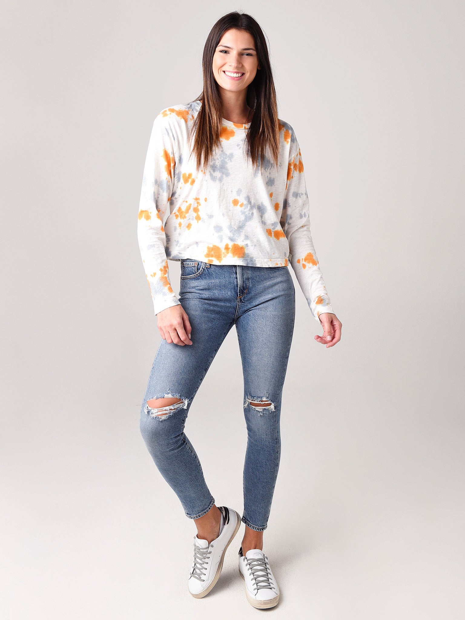 Stateside Women's Slub Tie-Dye Long Sleeve Boxy Crew Tee