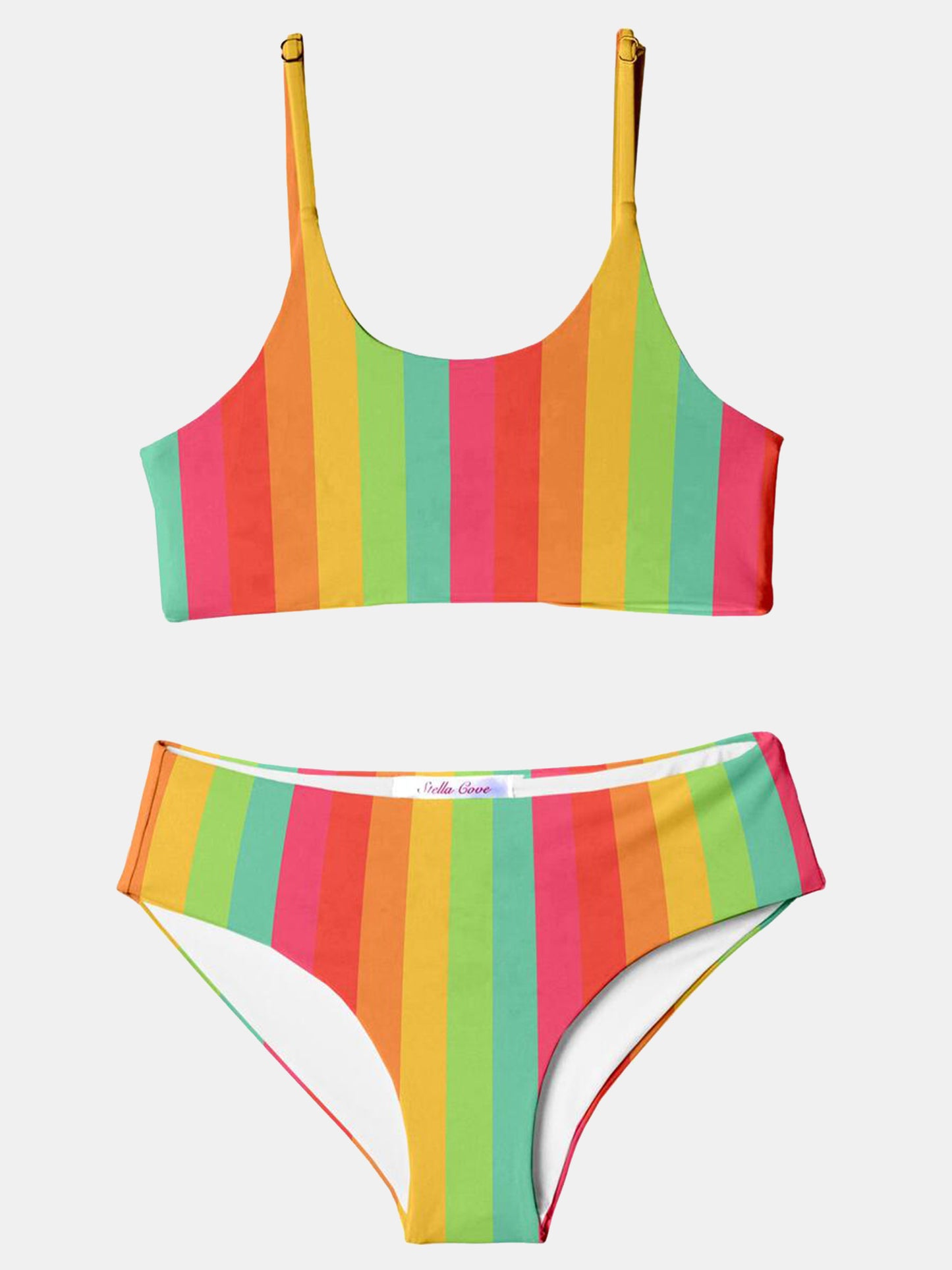 Fun & playful rainbow bikini for young wave runners.FEATURES: