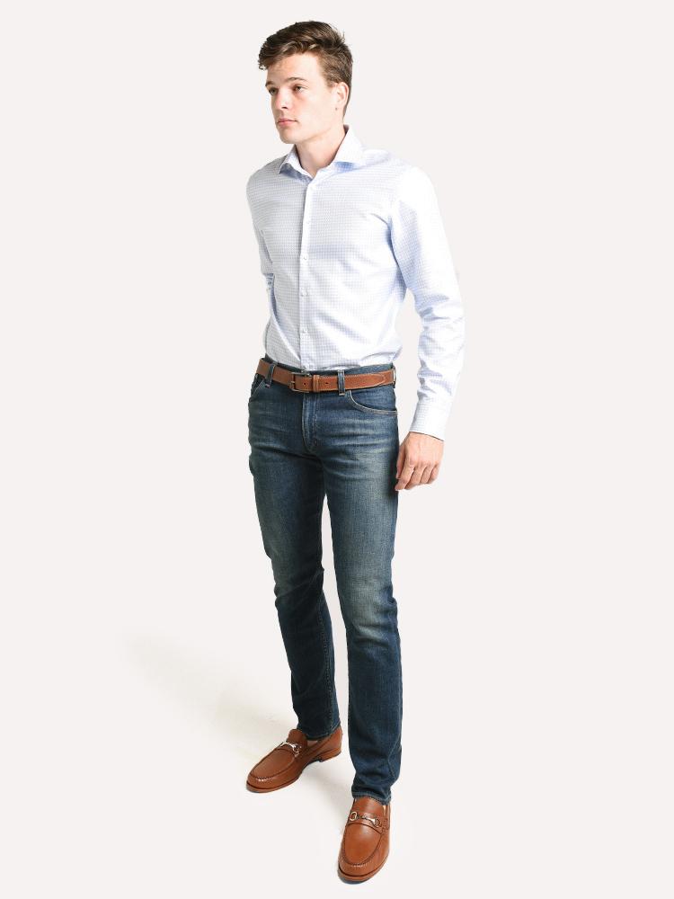 Go from the work week to the weekend in the Stenstroms Light Blue Check Fitted Body Shirt.