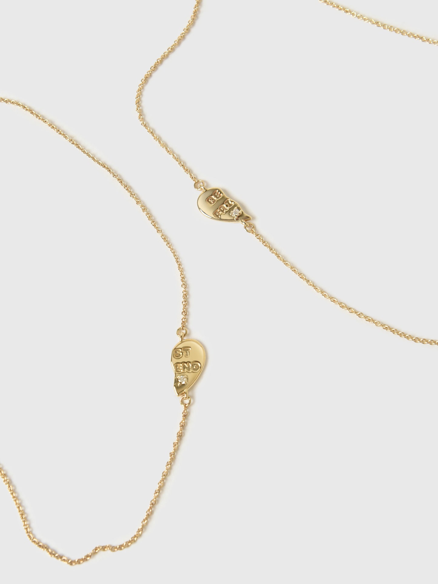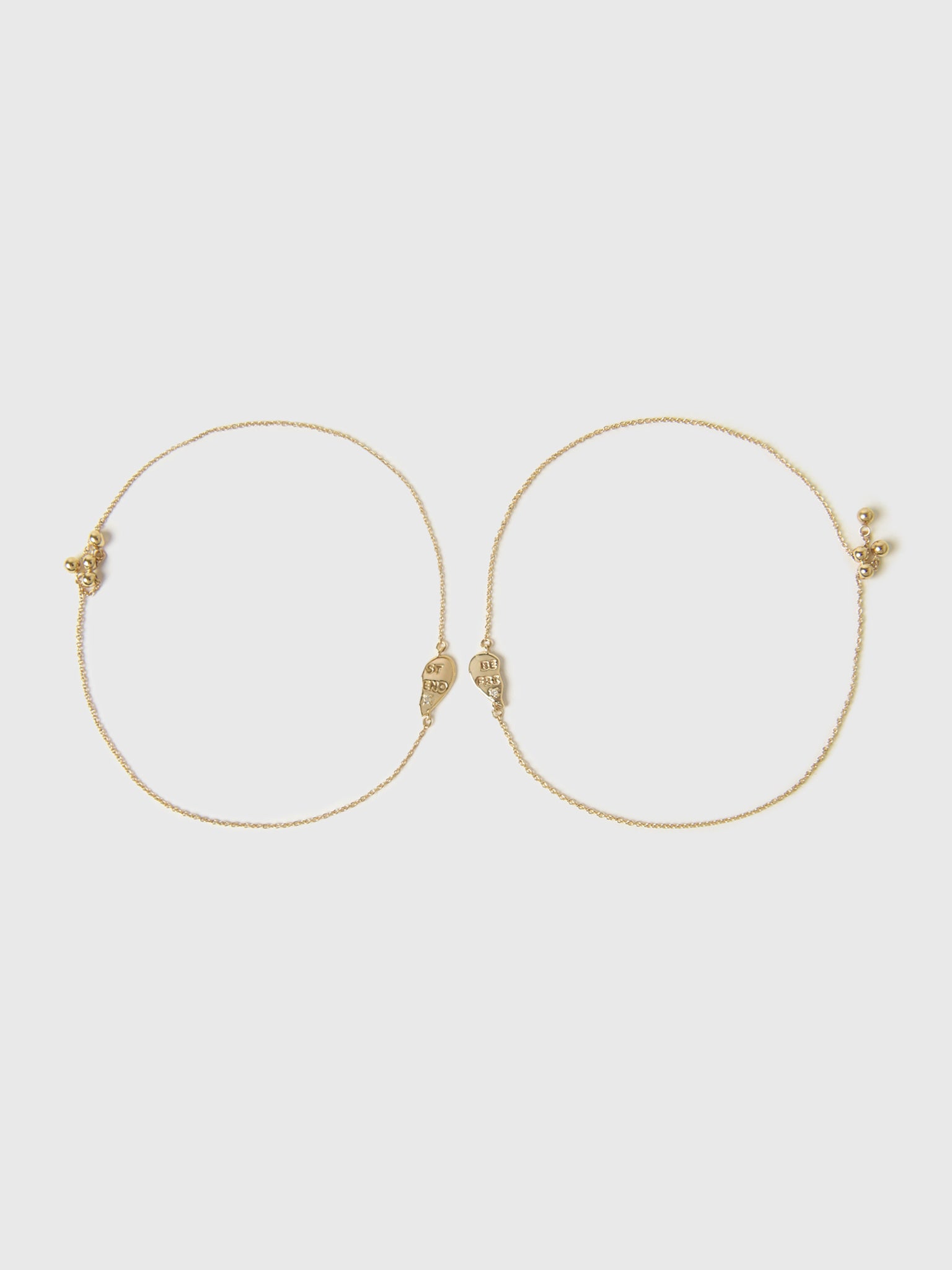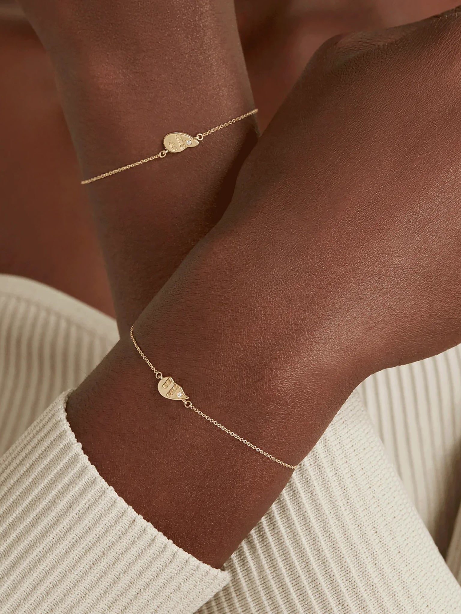 A pair of best friend bracelets made from 10-karat yellow gold with a single ethically sourced natural white diamond.