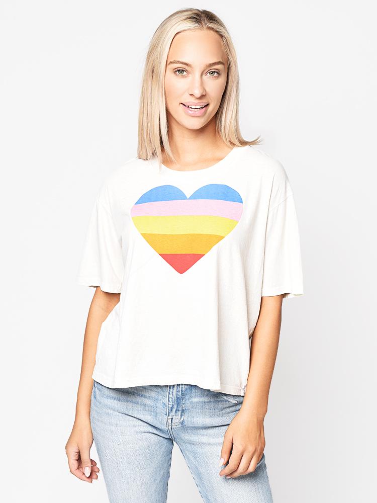 Everybody say love… with the Sundry Women`s Rainbow Heart Boxy Tee.
