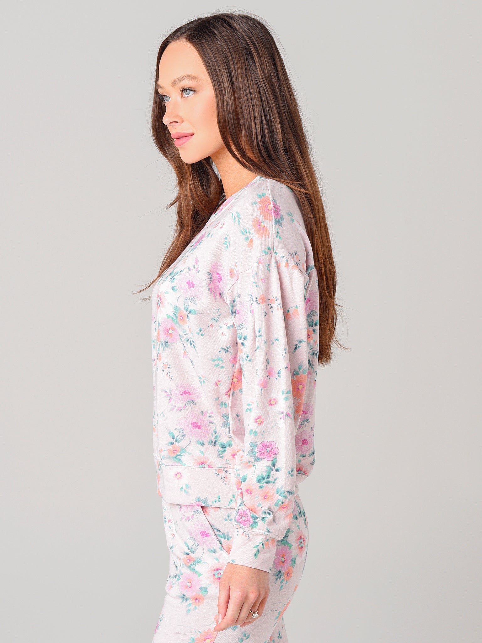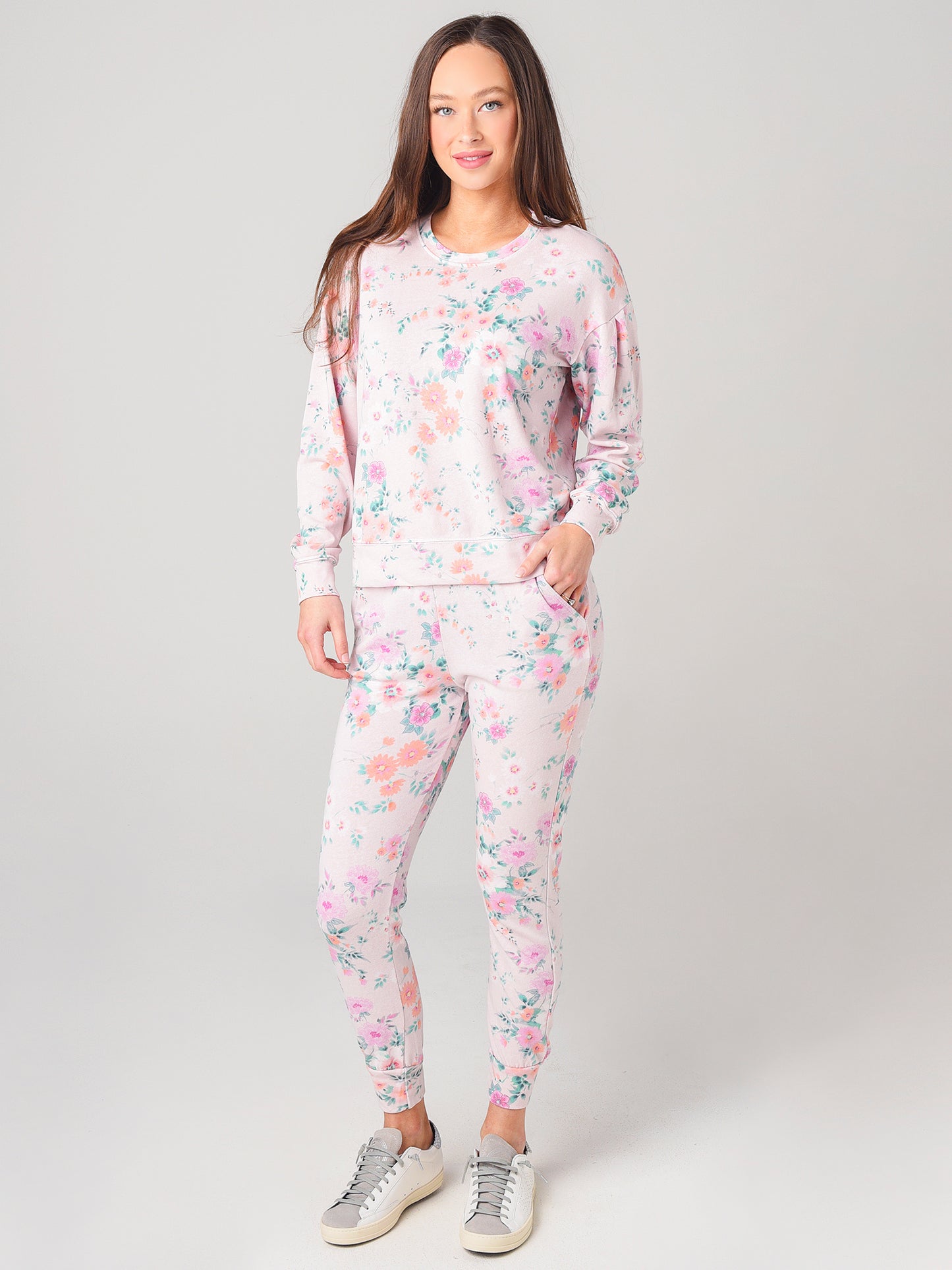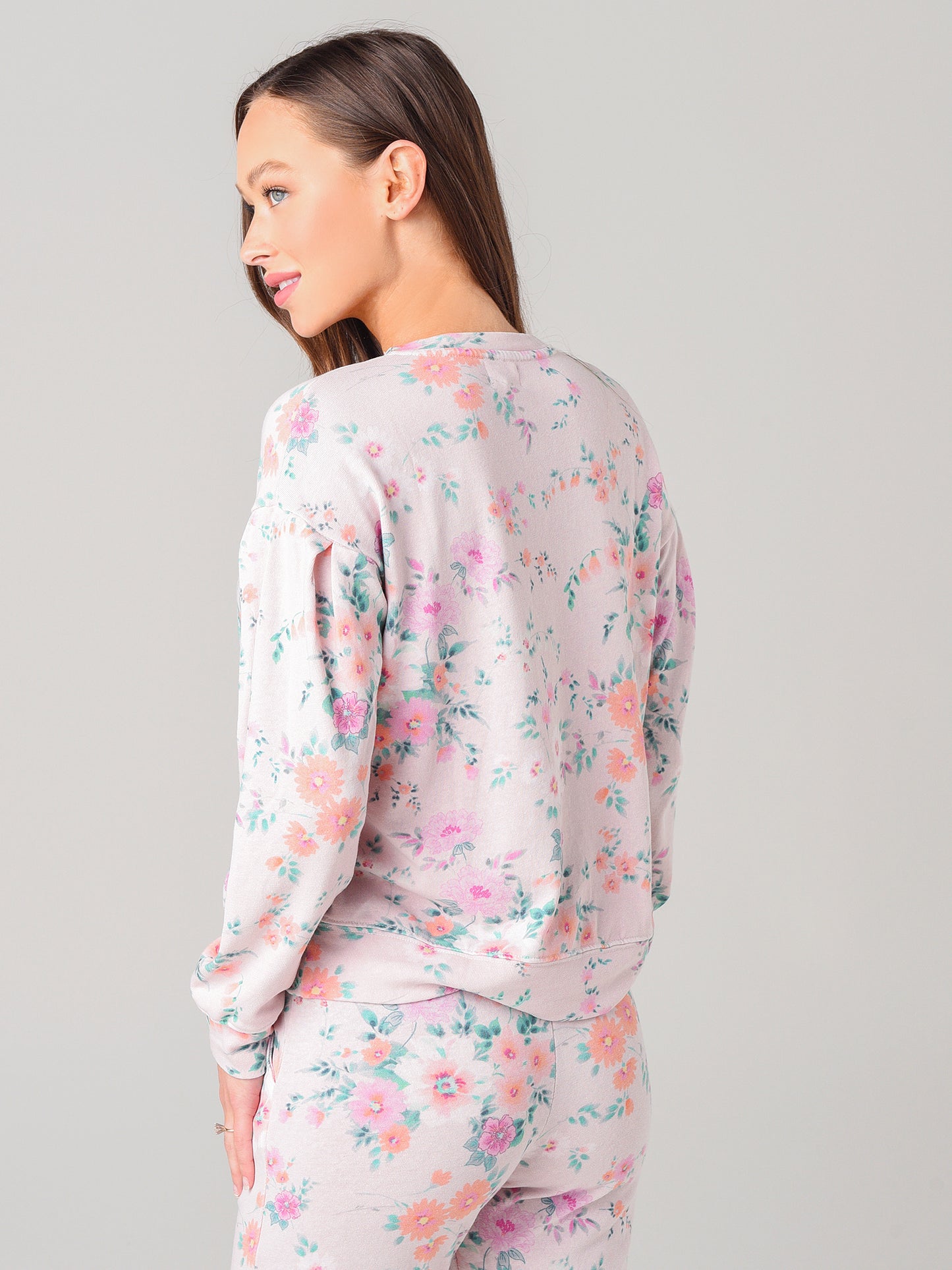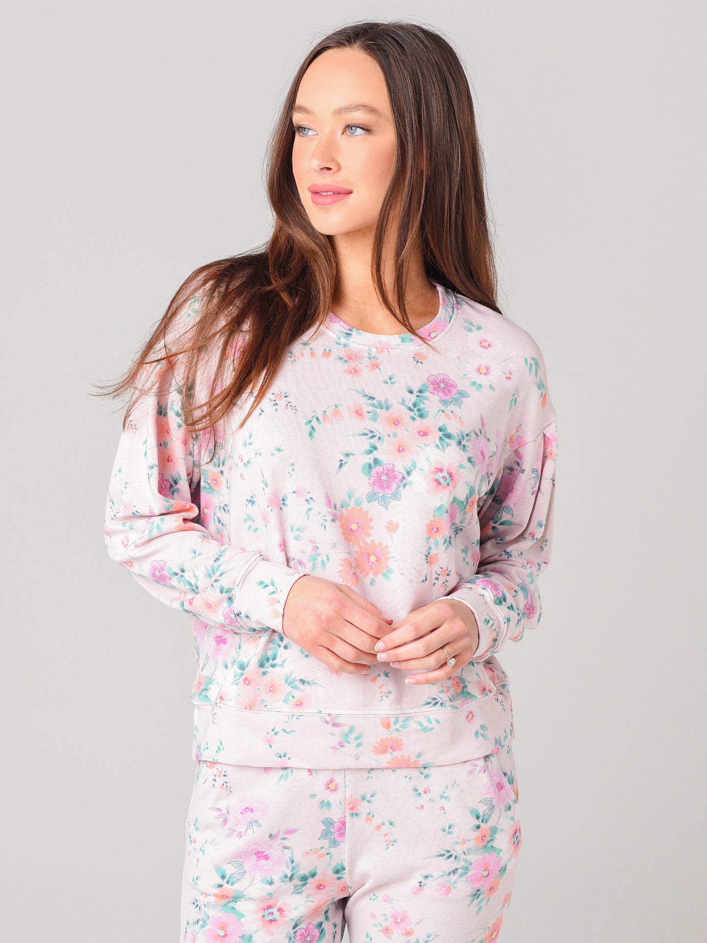 Exude comfy feminine vibes in the Sundry Women's Floral Pleated Sweatshirt.