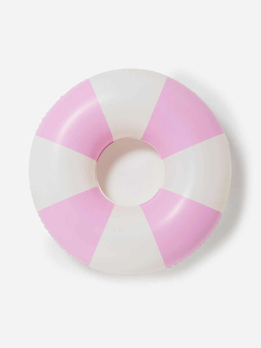 A classic pool ring featuring a trendy bubblegum pink striped design.