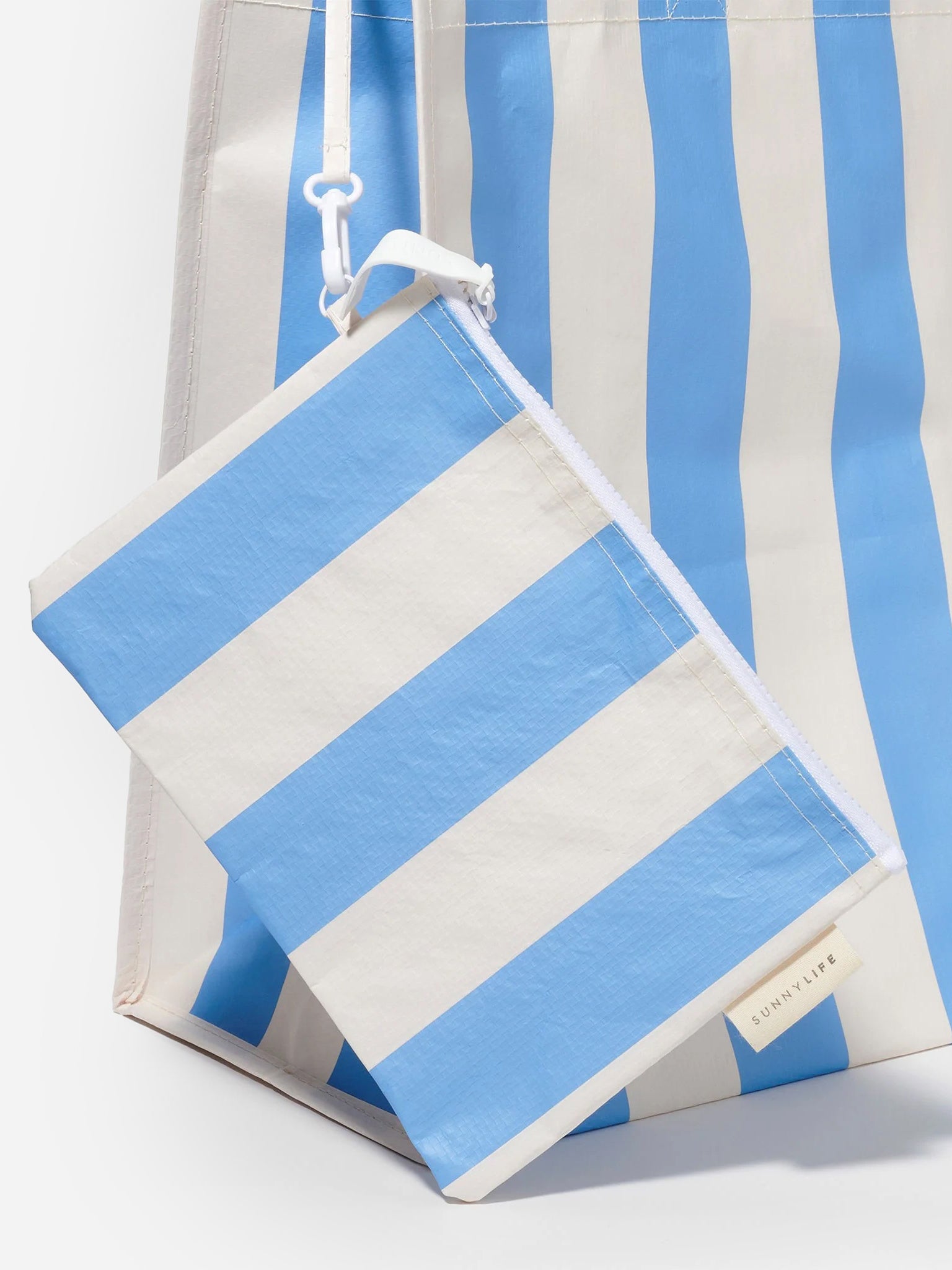 A large, carryall tote bag with durable cotton handles and a detachable zip pouch.