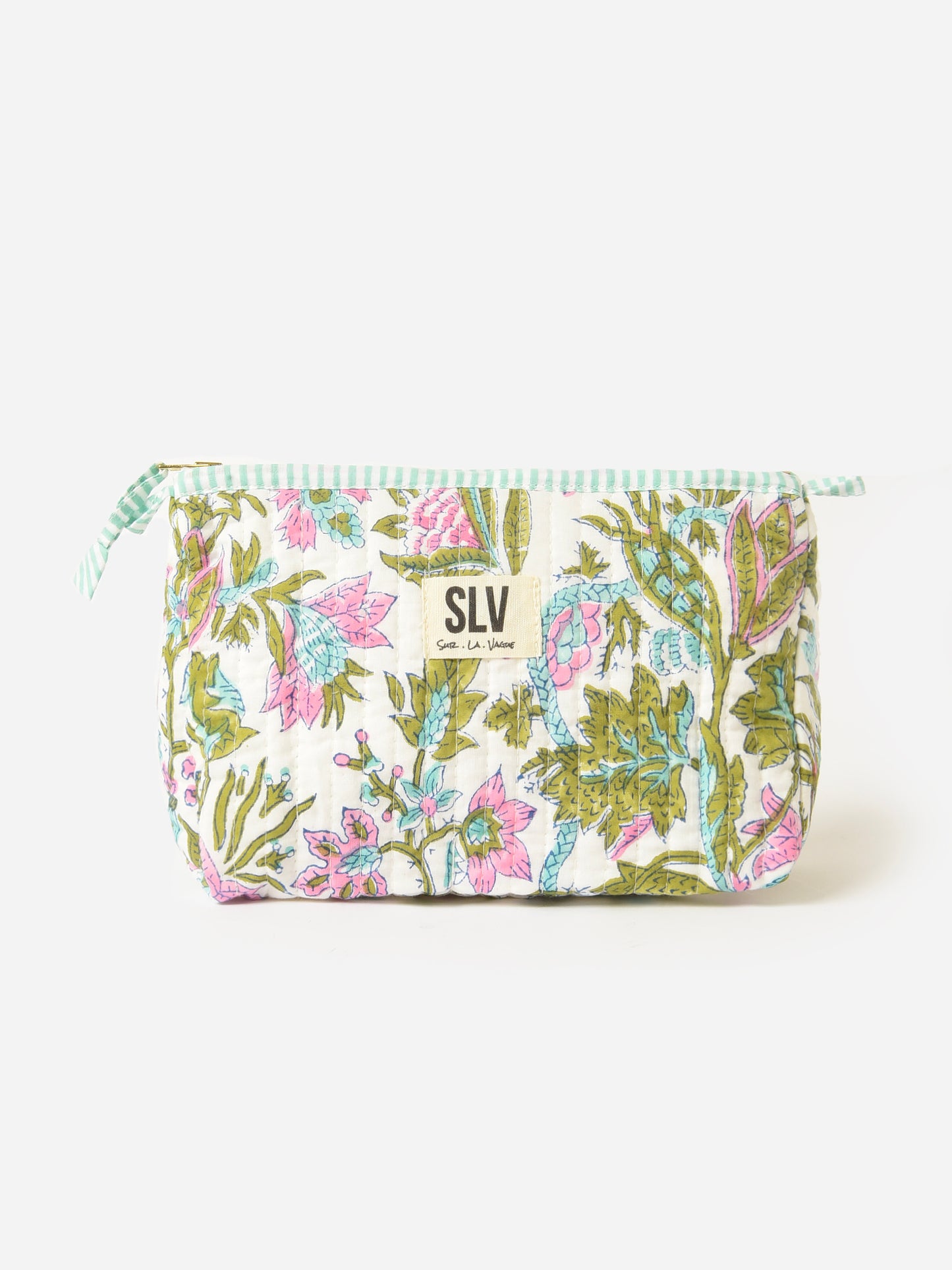 Novelty-printed pouch with a fully-lined interior and washable construction.