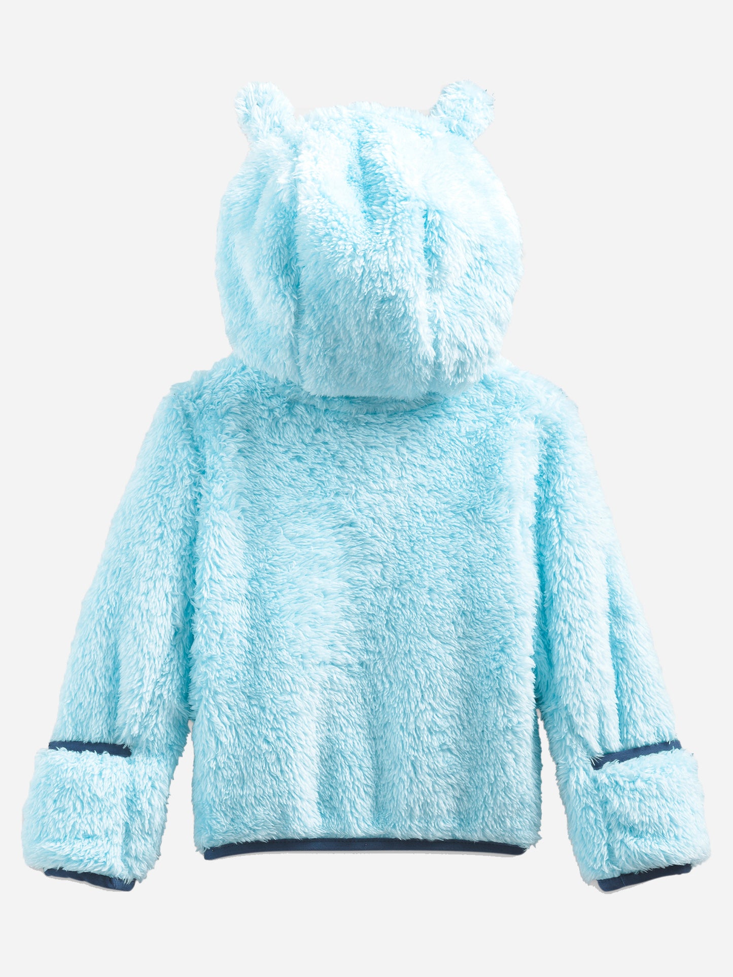 Soft, cozy fleece jacket featuring attached bear ears and fold-over mitten cuffs.