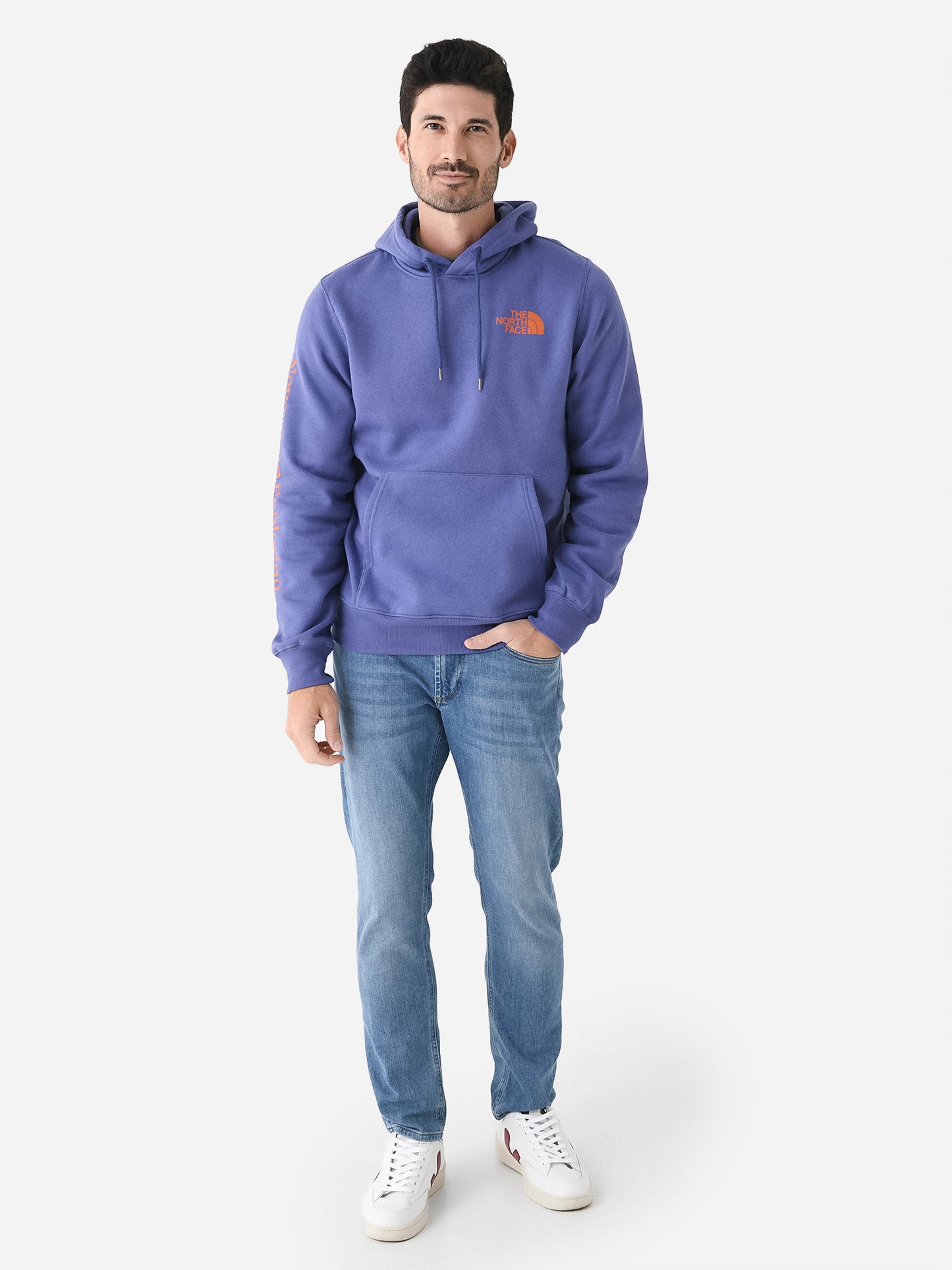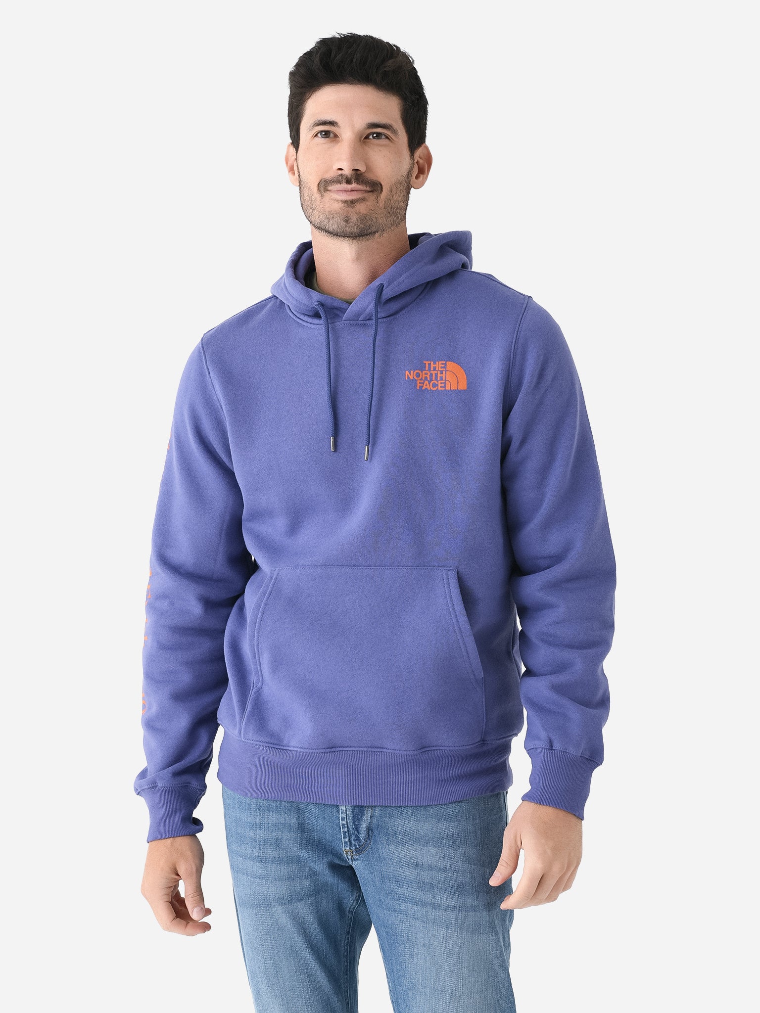 Pullover hoodie with a large kangaroo pocket and bold North Face graphics.