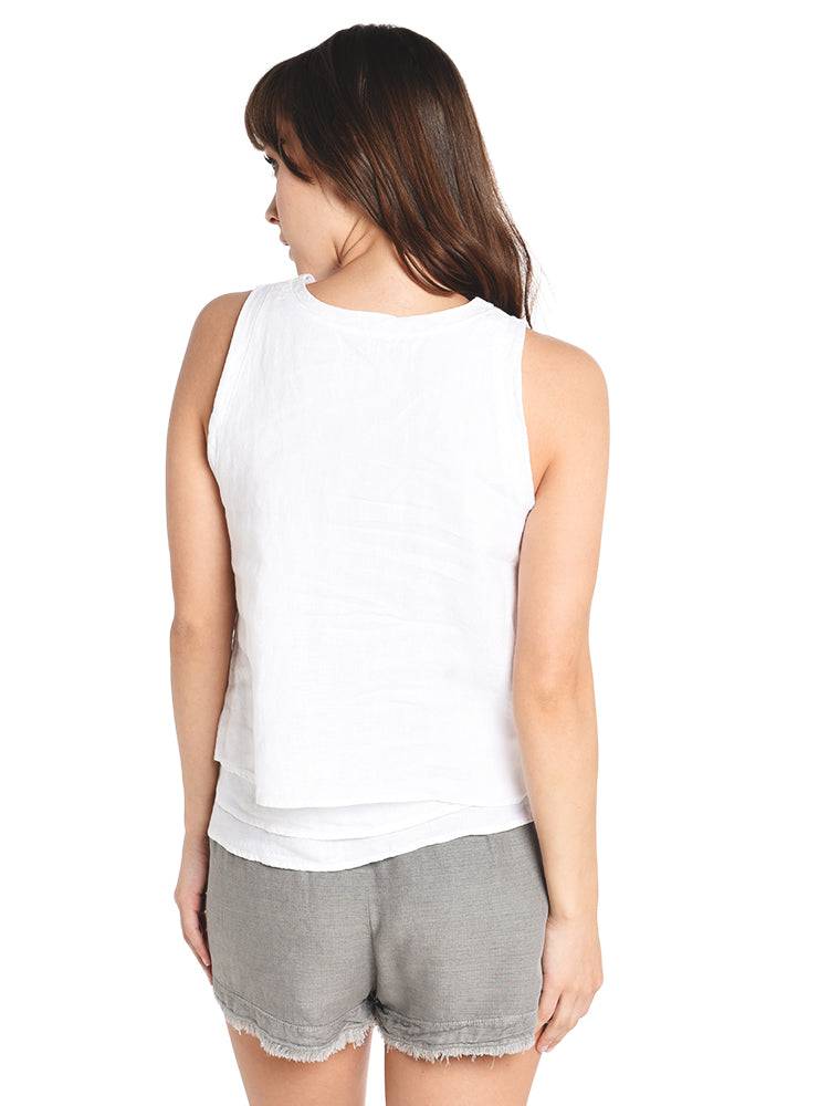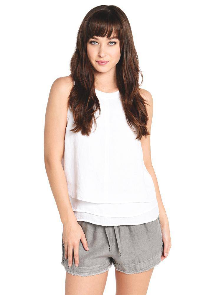 Get a crisp look for the season in the Three Dots Woven Linen Layered Tank.