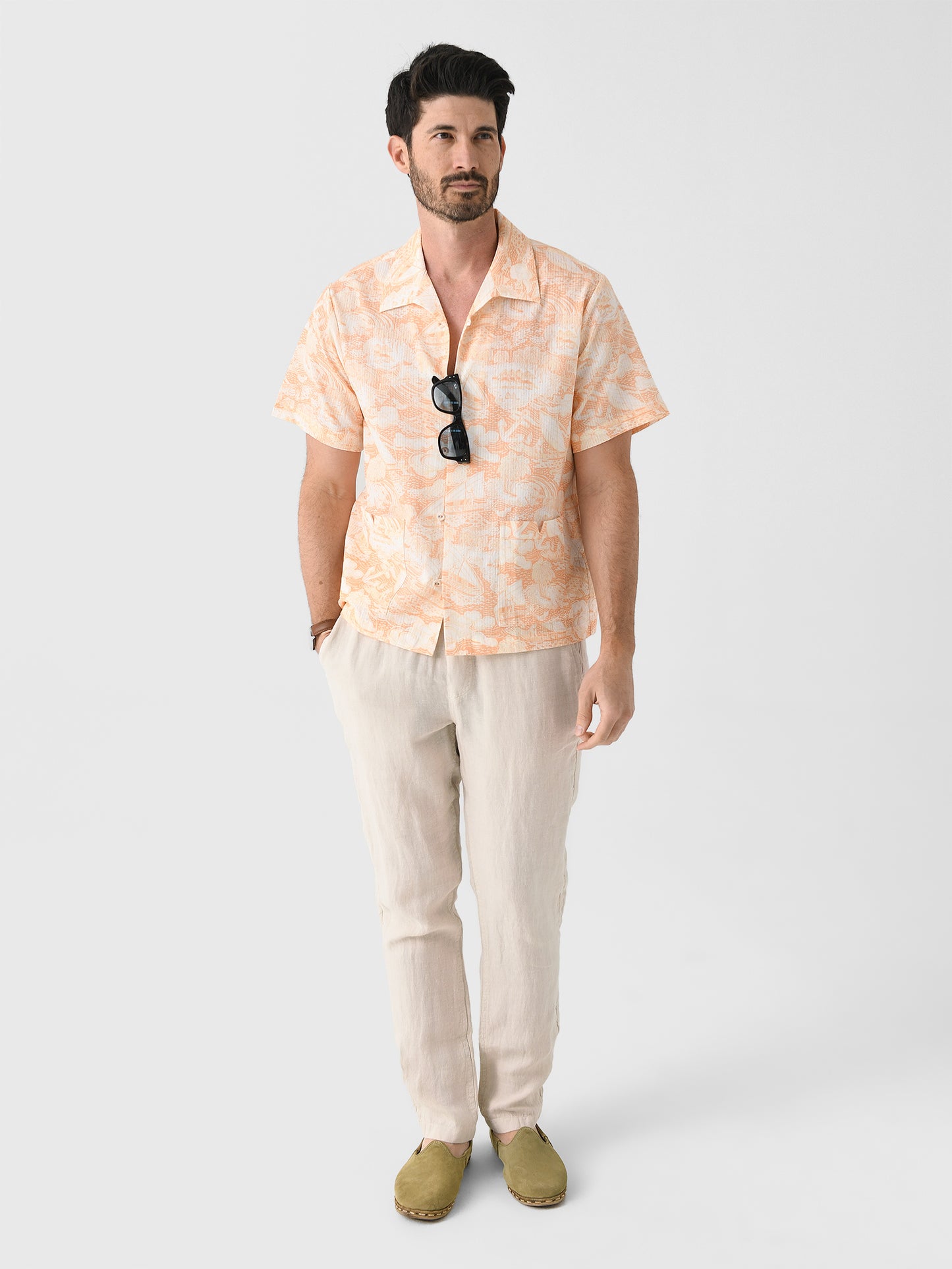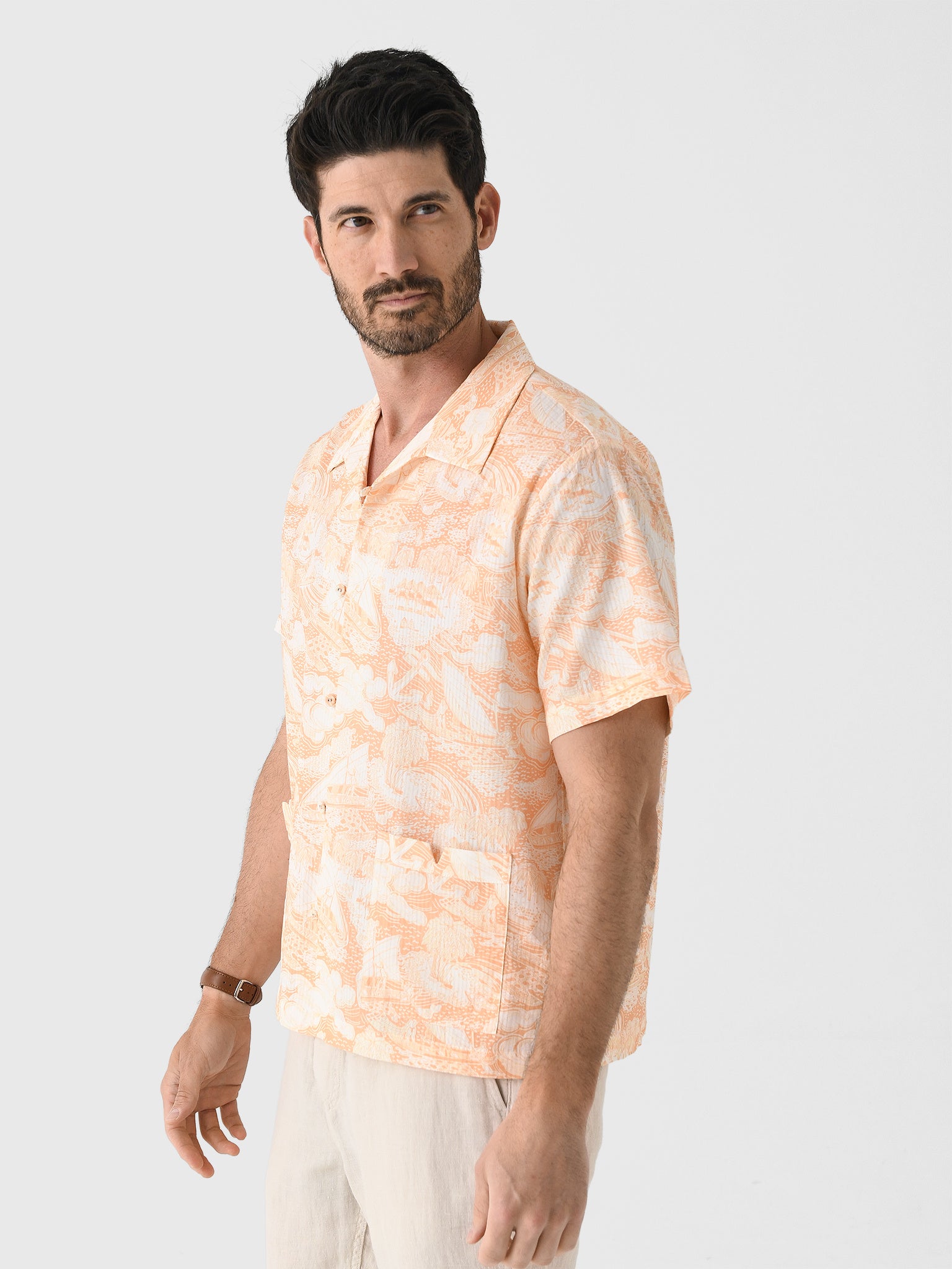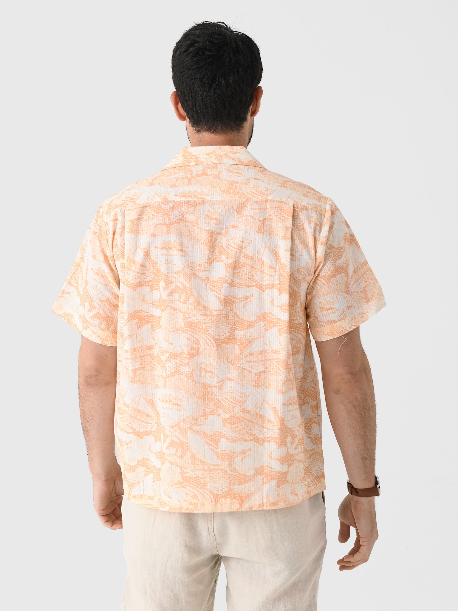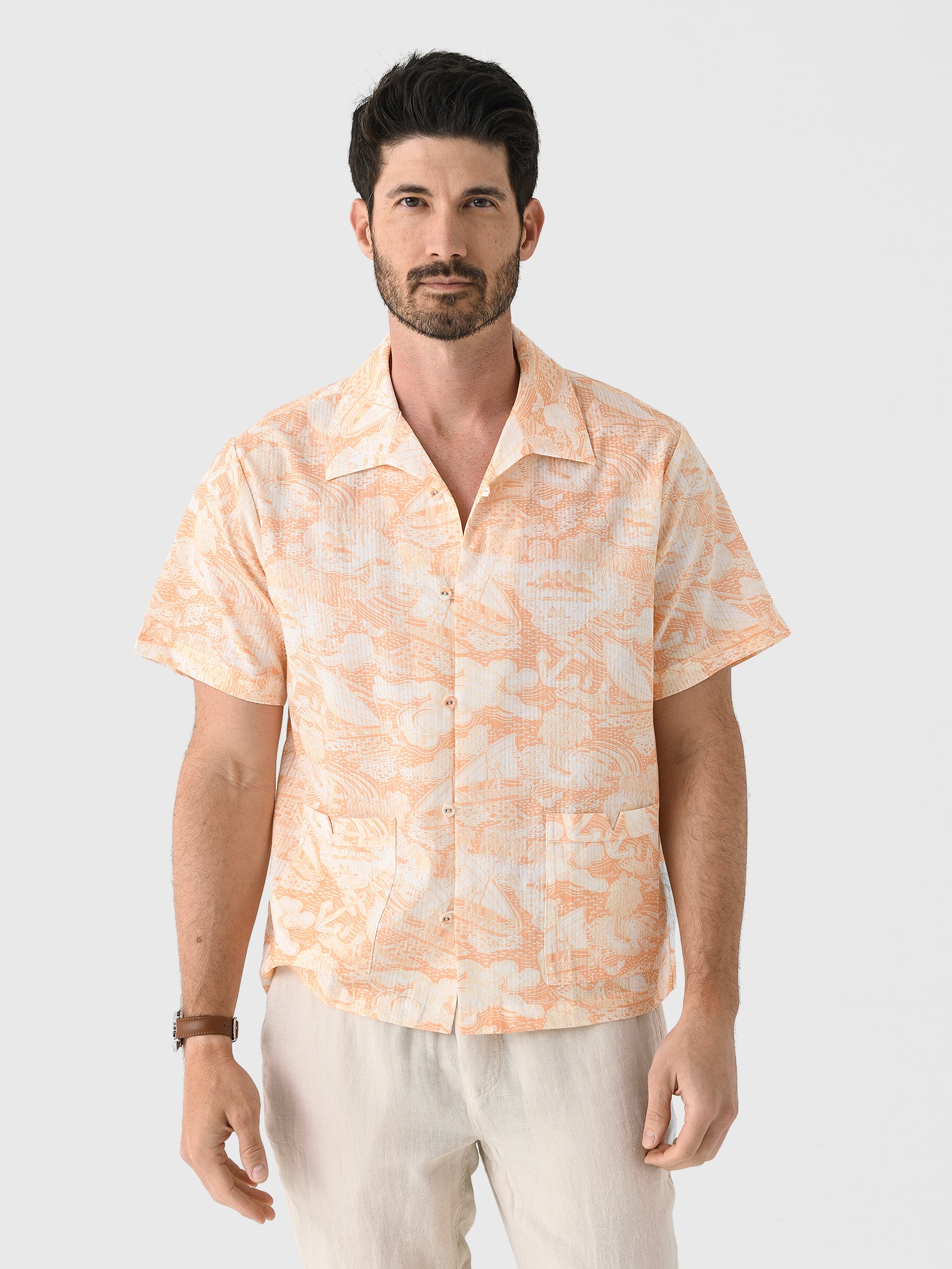 This lightweight shirt is made from organic cotton seersucker fabric with a vintage-inspired print and self-covered loop buttons.
