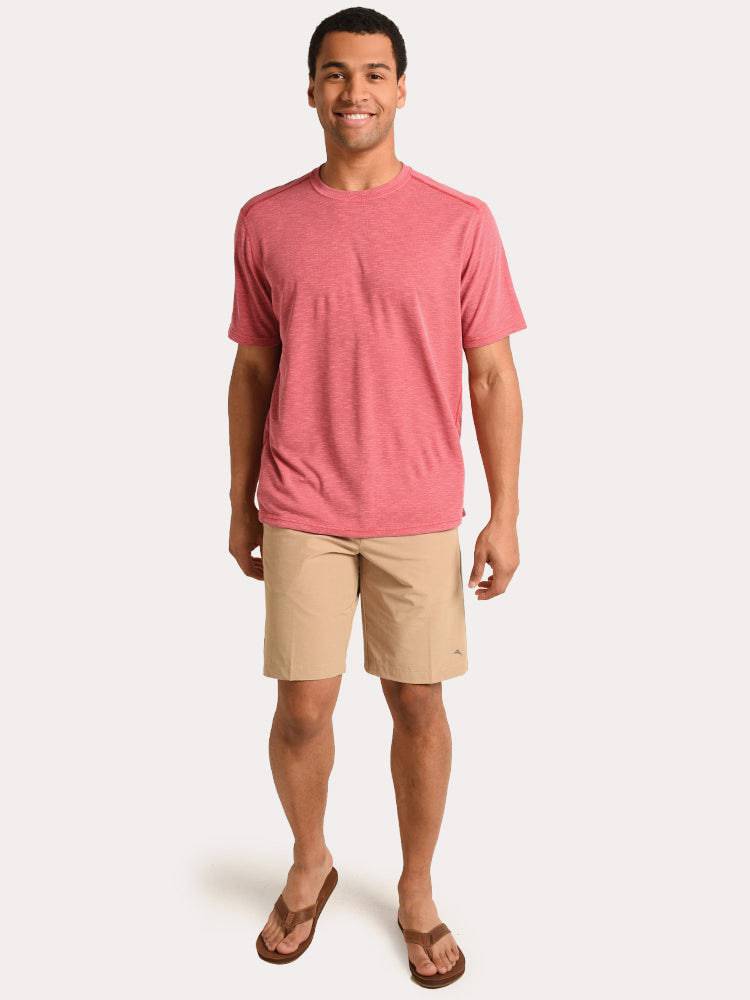 - Styled with Tommy Bahama shoort Style # T815546#. Model is wearing size medium shirt and 32 short.
