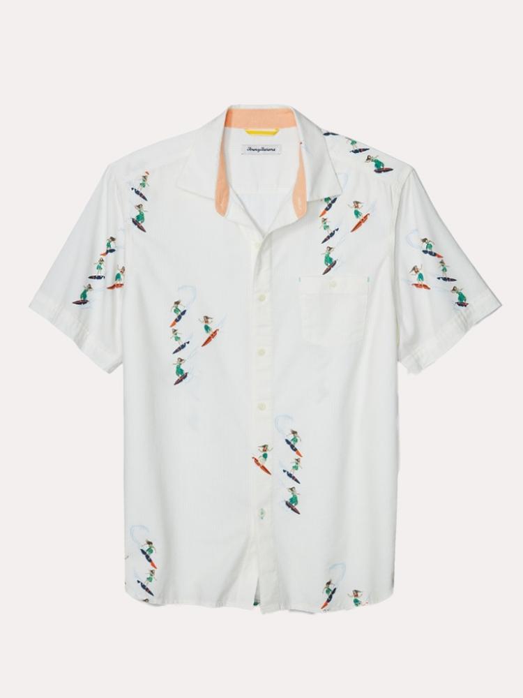 Get a festive look for vacation in the Tommy Bahama Hula-Gals Camp Shirt.