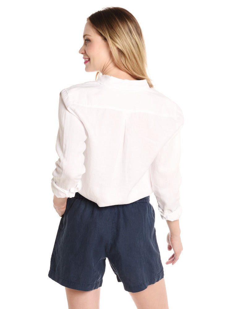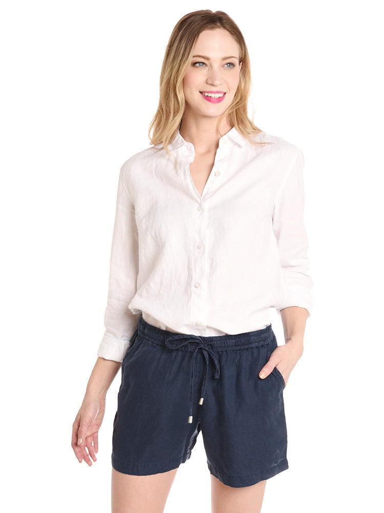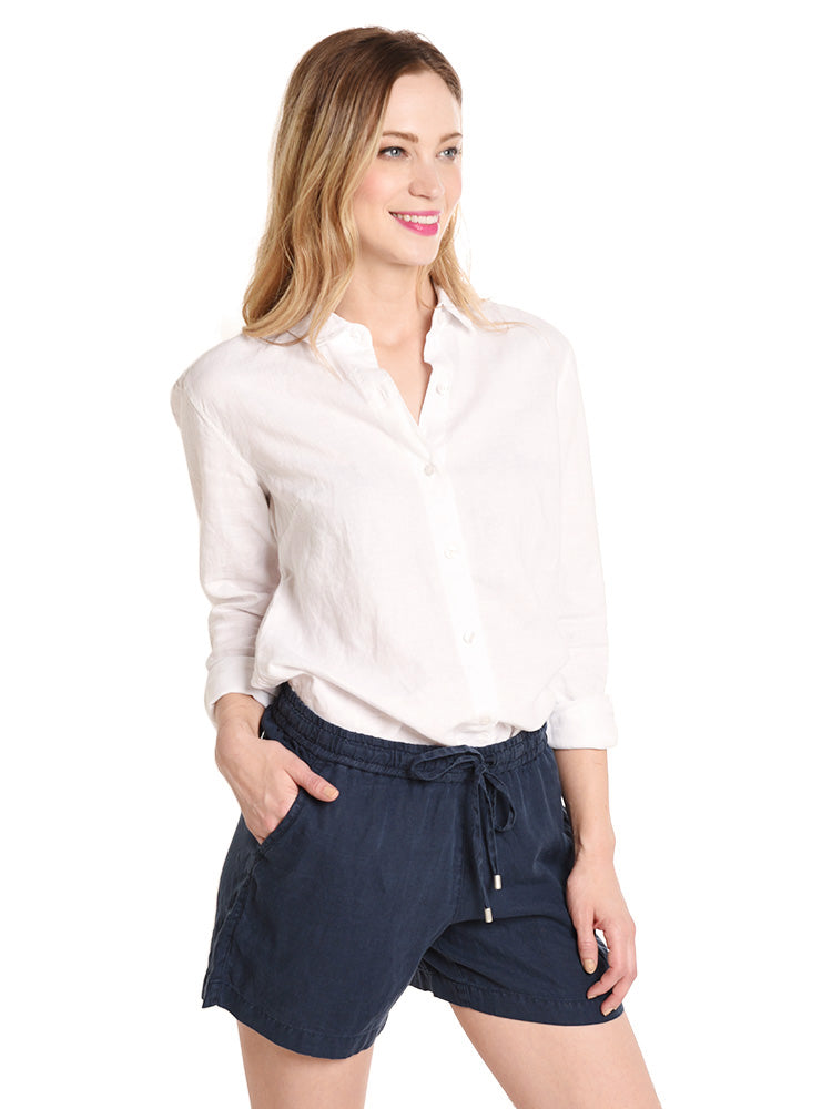 In lightweight linen, it's done in a classic boyfriend fit for an effortless, easy look, and features Tommy Bahama embroidered marlin at the left hip.