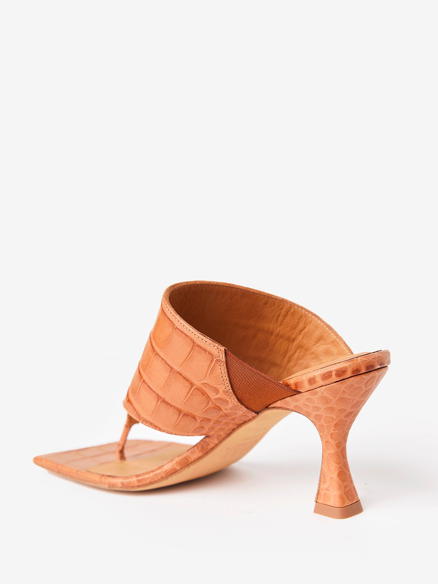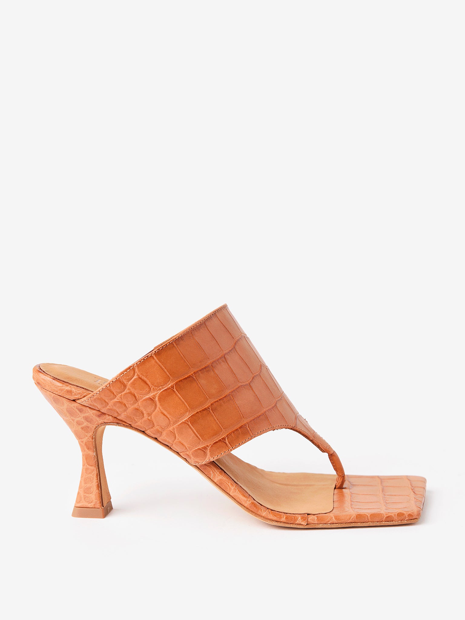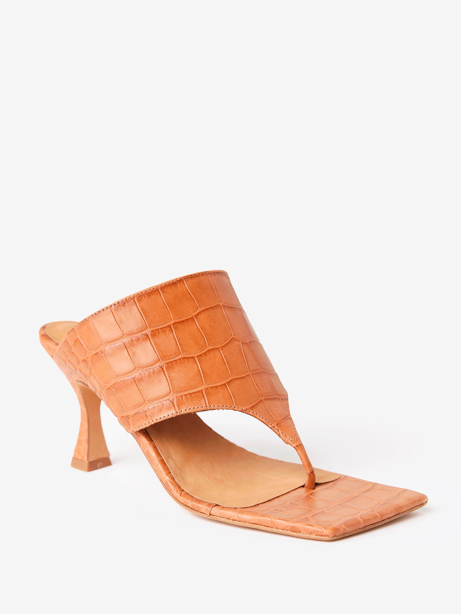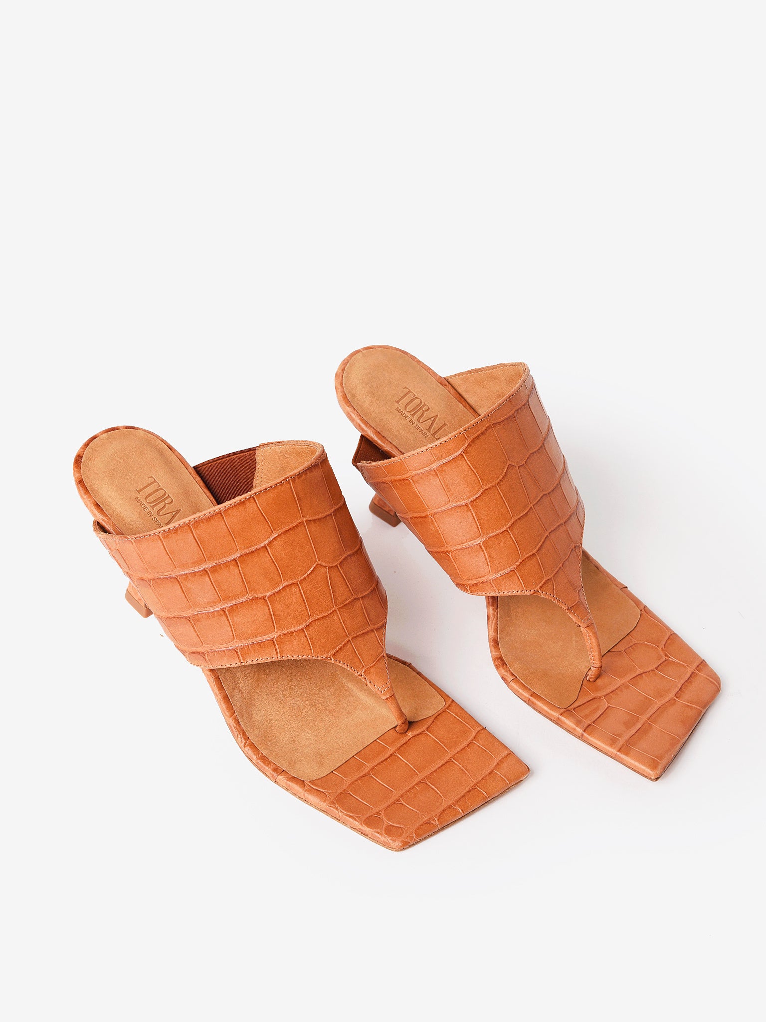The Toral Coco Cindy Heeled Leather Sandal brings the bite to your footwear with exotic croc texture and timeless contemporary styling.