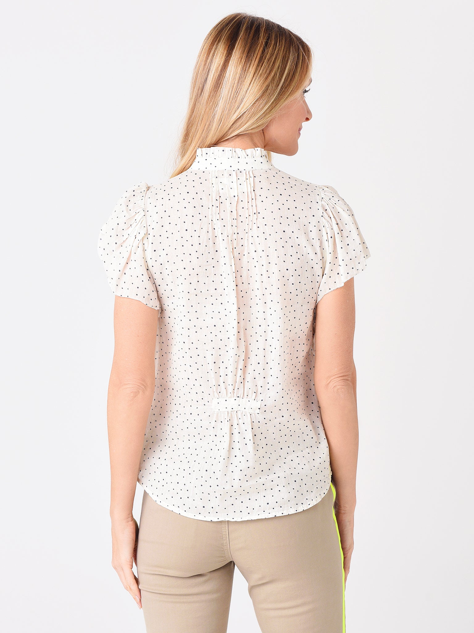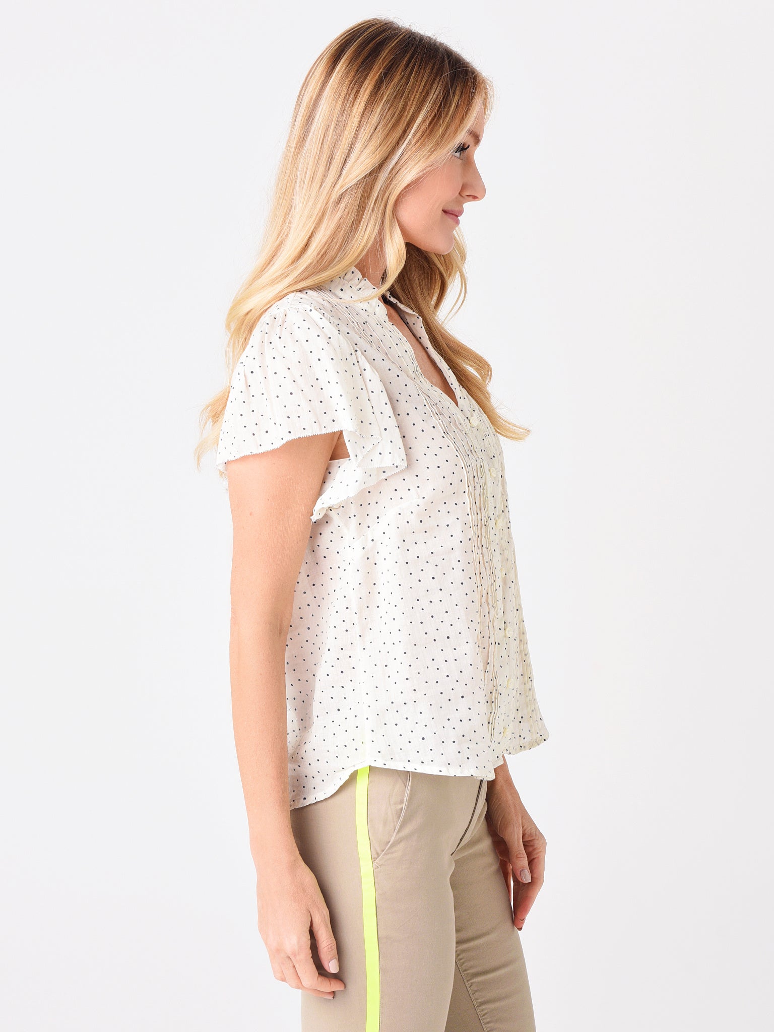 The Trovata Women's Cate Blouse is a frilly top with feminine pleating and dot print.