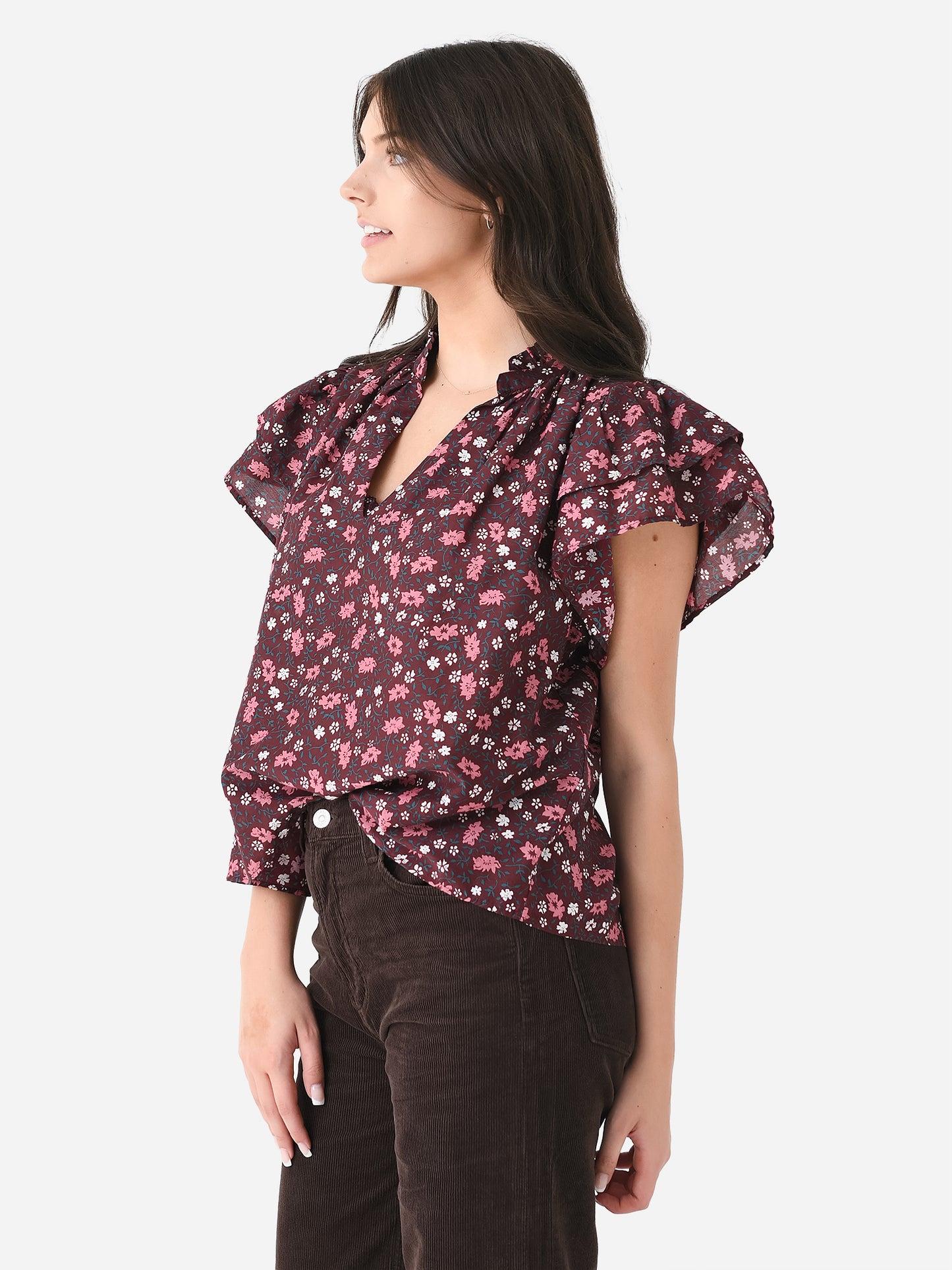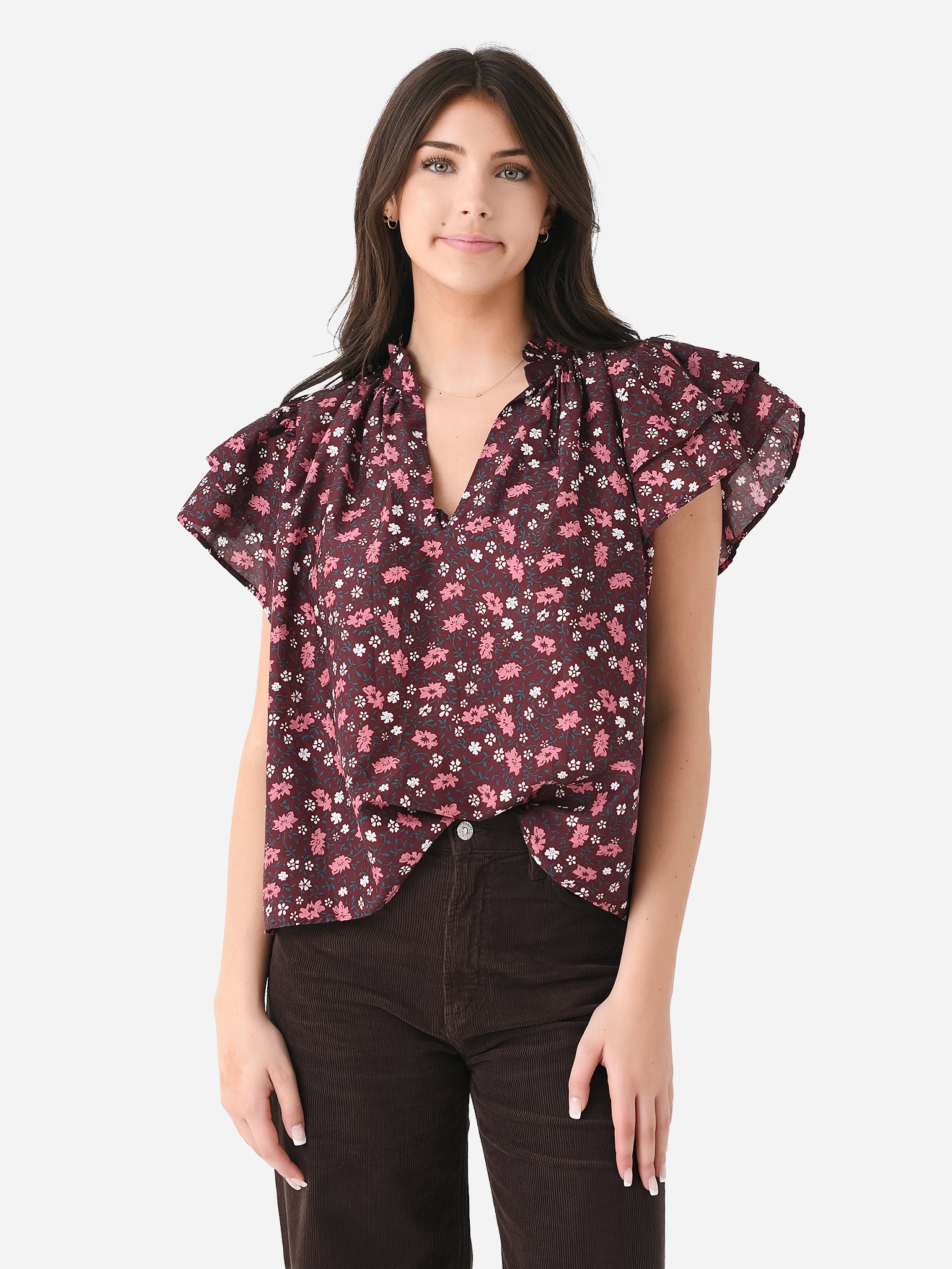 - Model is wearing size Small blouse.
