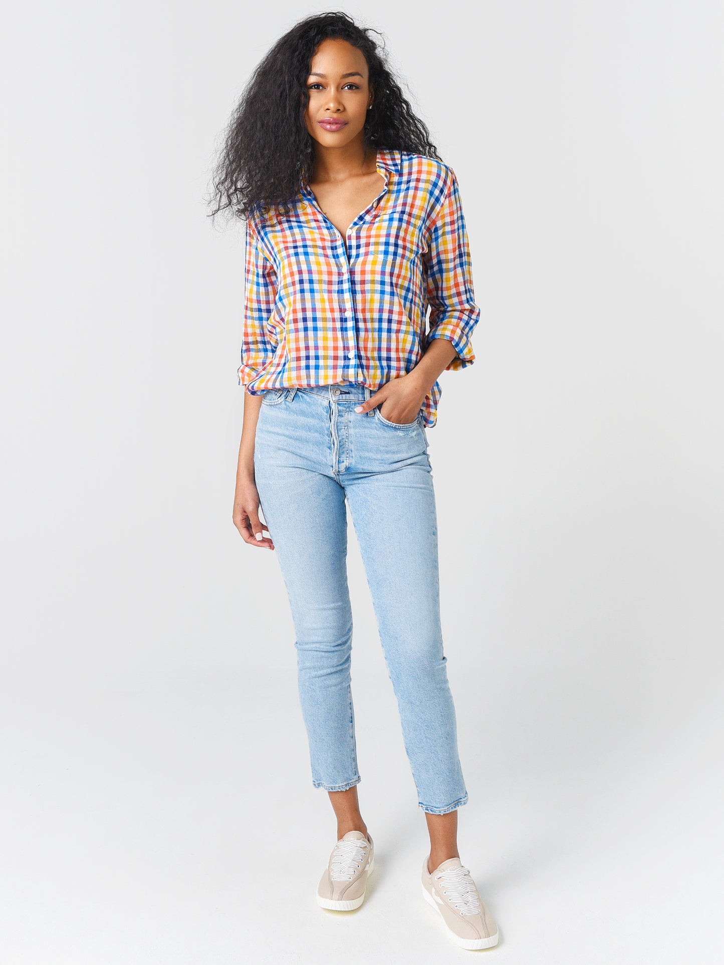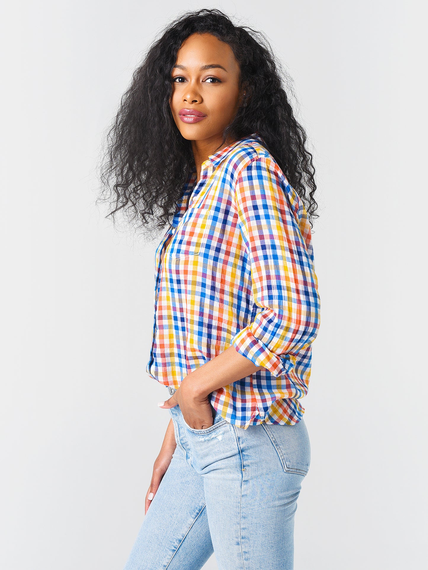 Make a colorful statement on the brightest spring days with the Trovata Women's Grace Classic Shirt.