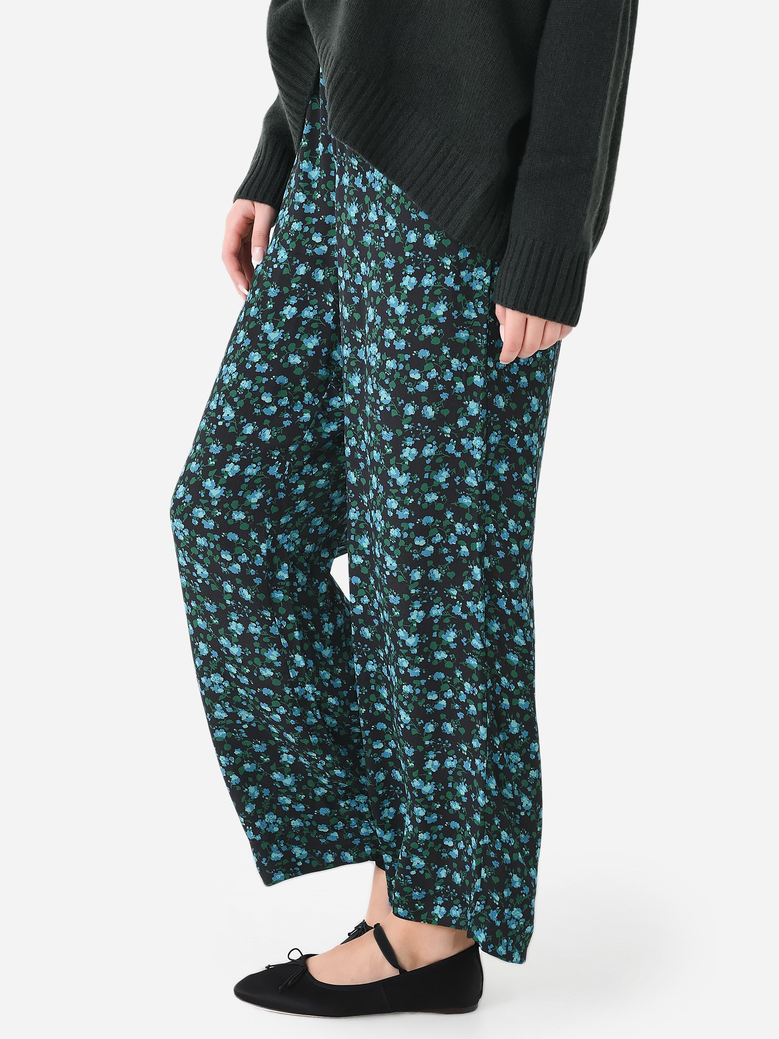 Lightweight pull-on pant with a dainty floral print and an easy dress-up or down style.