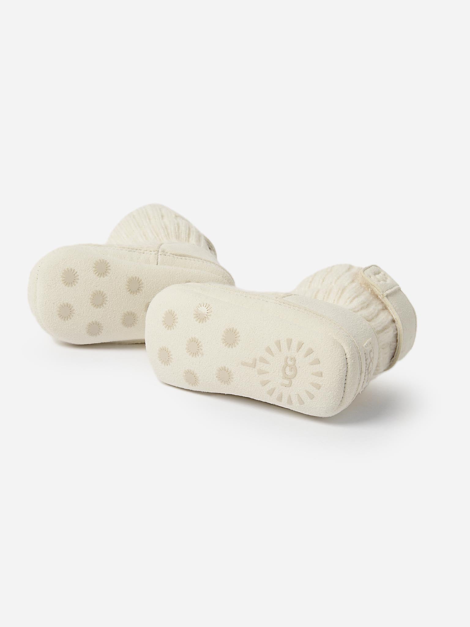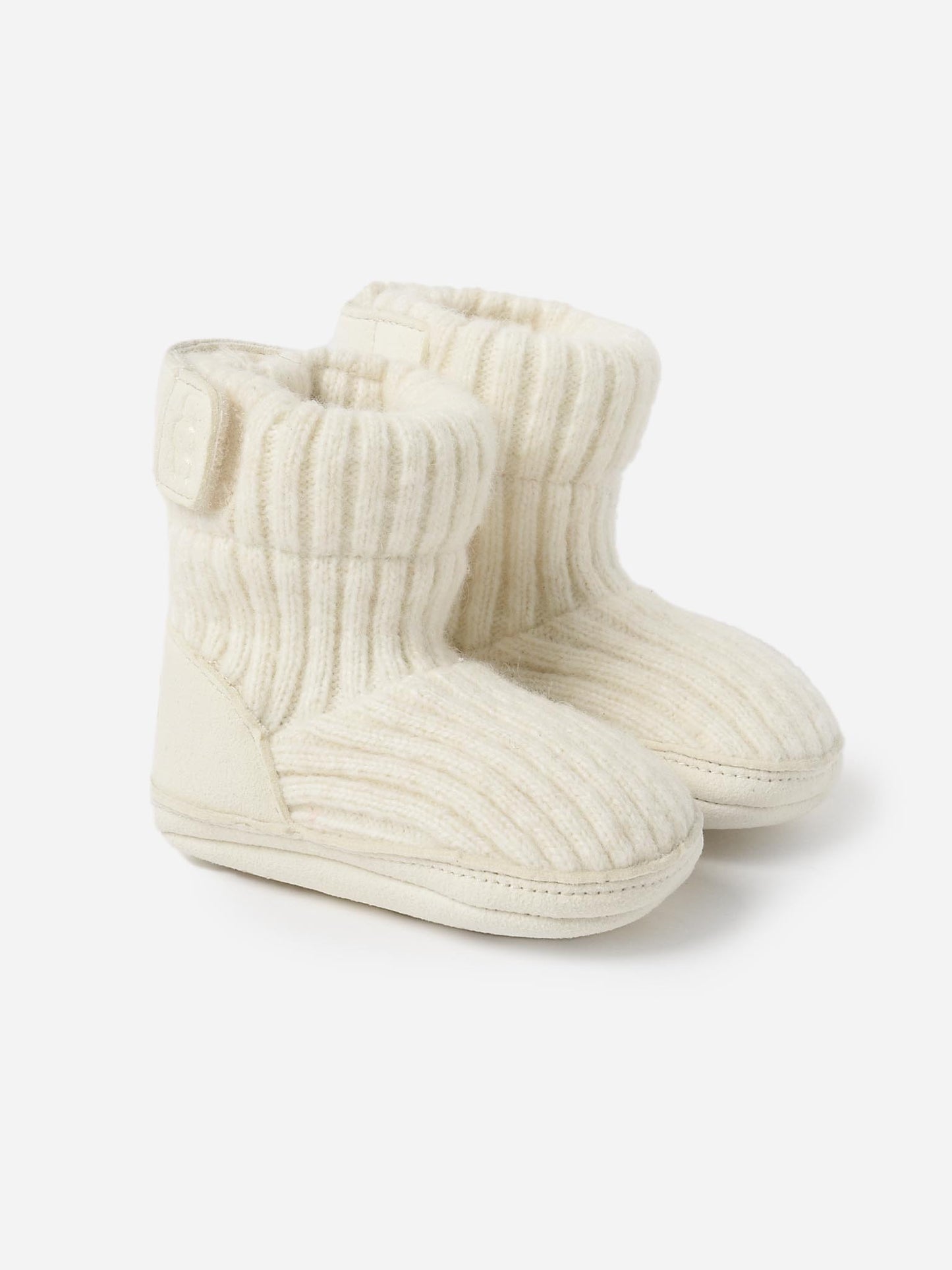 Ribbed knit slipper bootie made from recycled polyester with a slip-resistant sole.