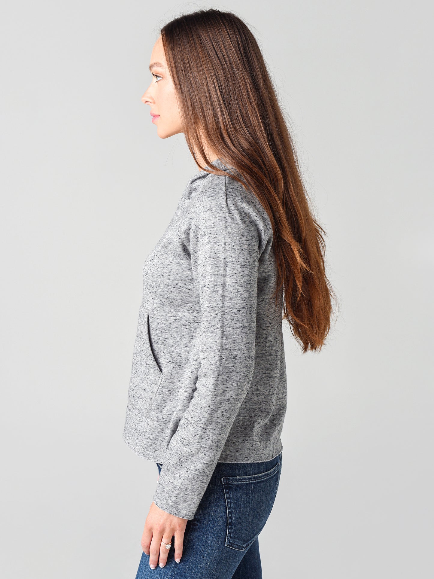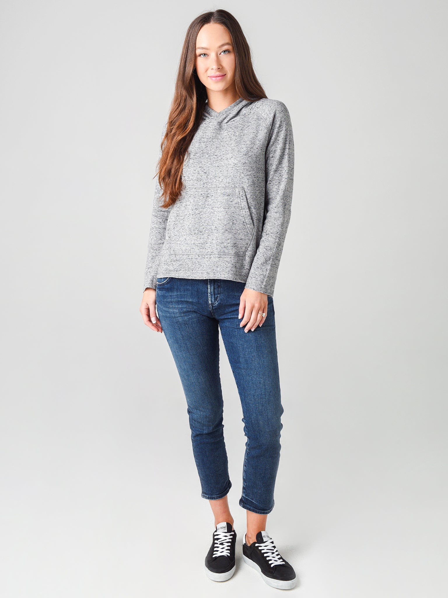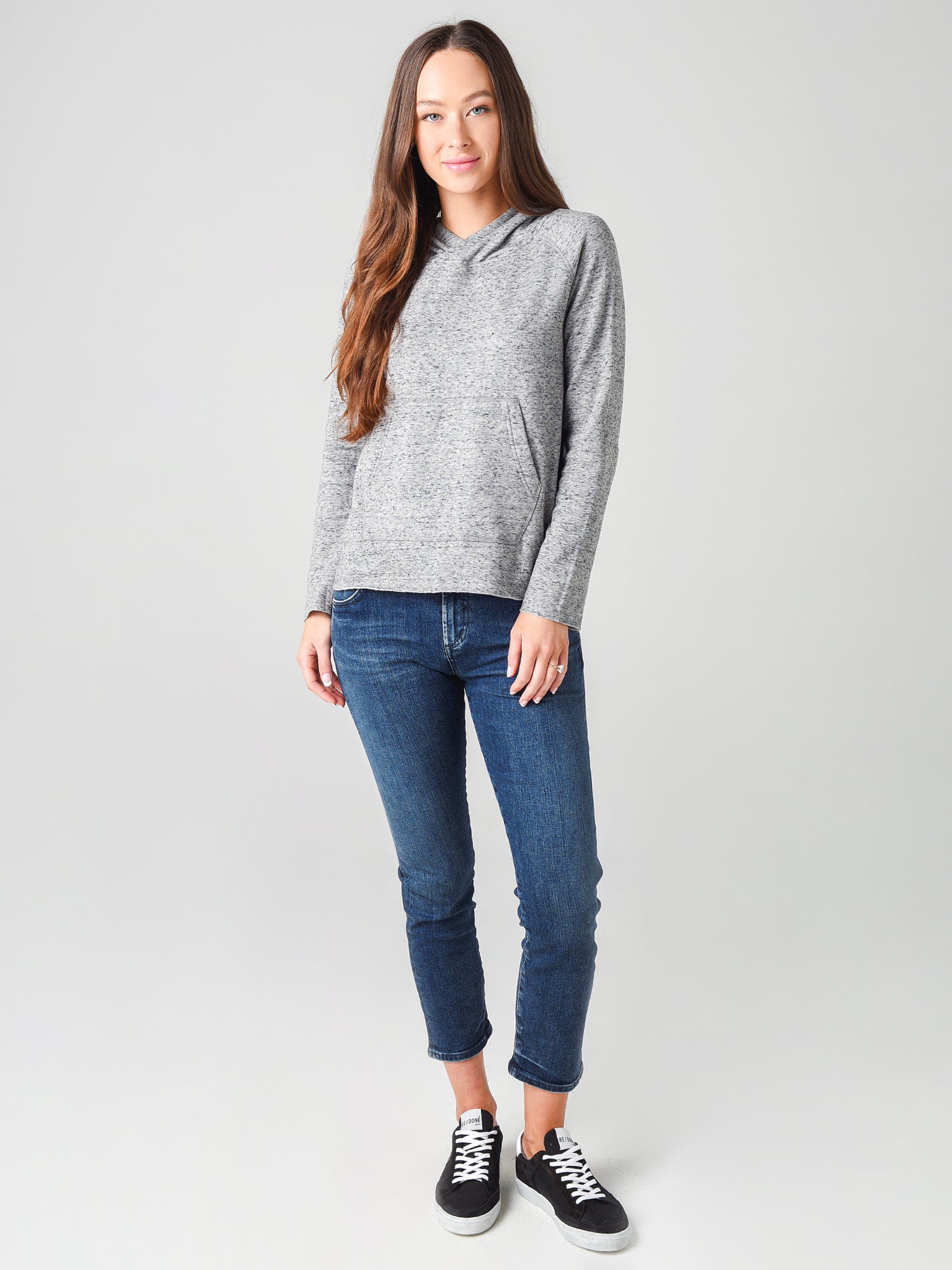 - Model is wearing size small hoodie and size 26 jean.