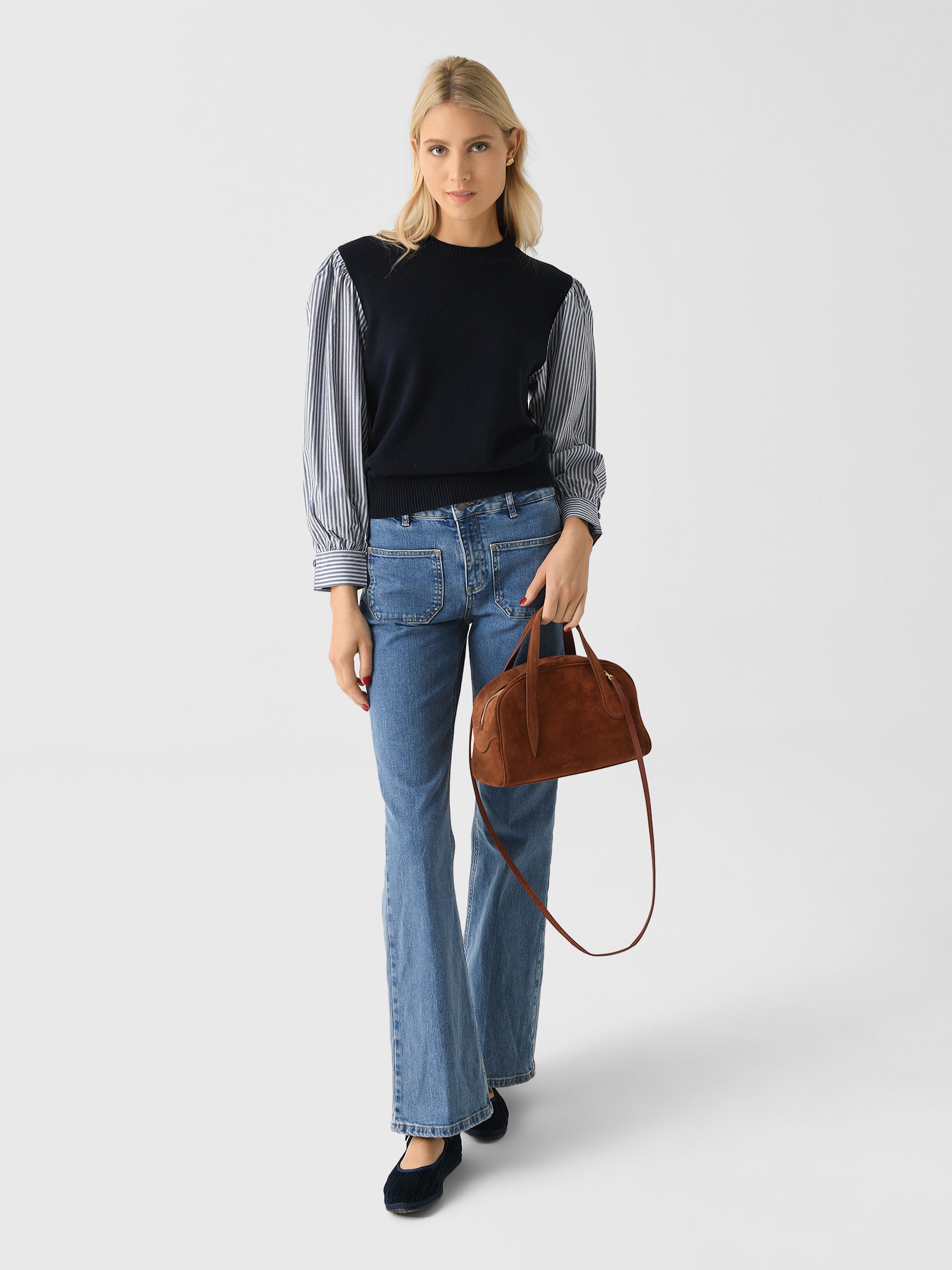 - Model is wearing size 1 sweater.