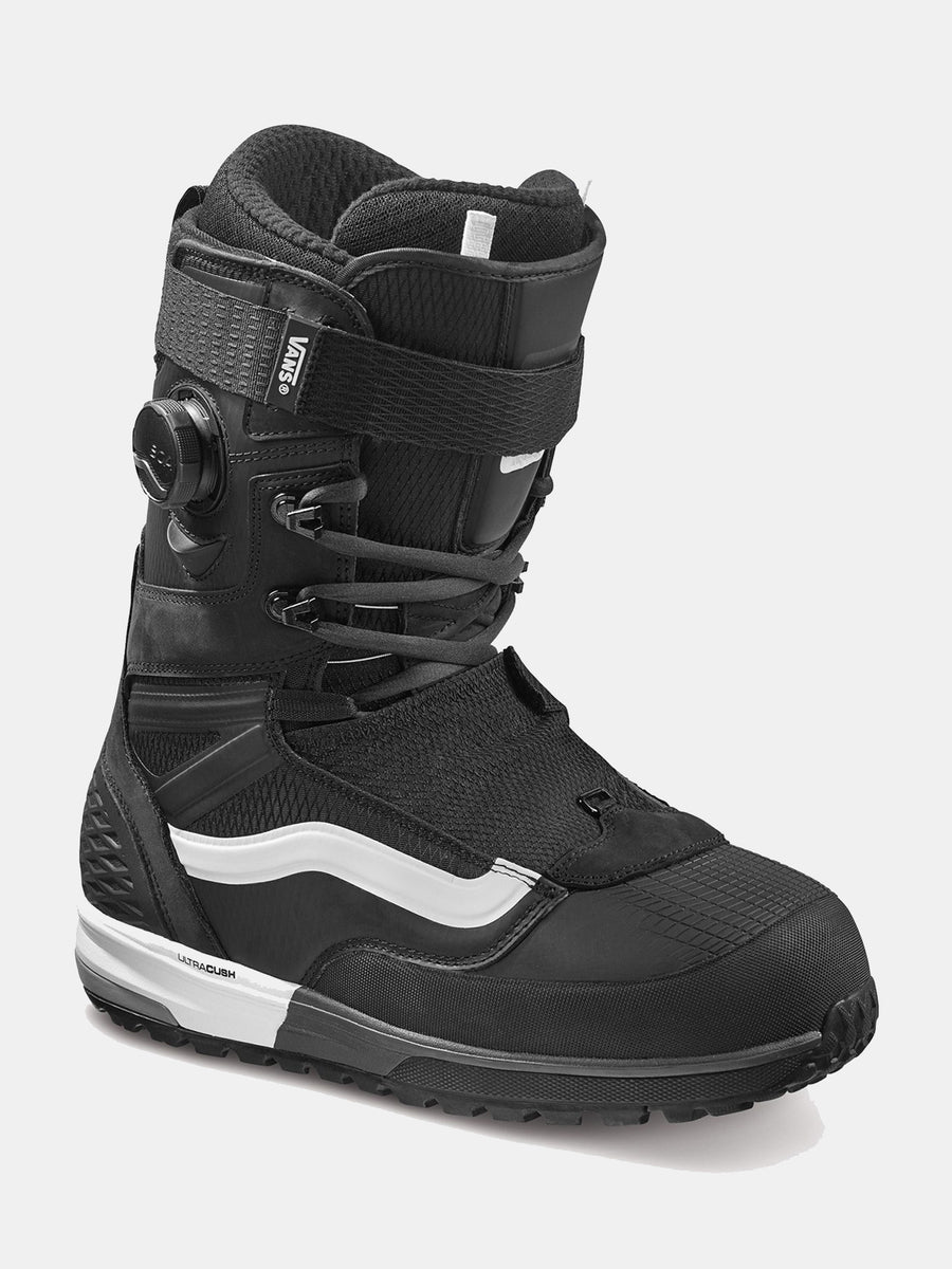 Flex Rating – 5 - 9 (1 Soft - 10 Stiff) Vans Flex Control System – Removable high-rebound Hytrel® tongue stiffeners allow riders to custom-tune their flex. Slide them both in for maximum support, use just one to provide either increased lateral or medial response or leave them out for a softer-flexing boot. As boots soften up over the course of a season, you can add the tongue stiffeners back in to extend the life of your boots. Instep Flex Zone – The Instep Flex Zone functions to maintain natural ankle flexion in your boot, whether in or out of your bindings. Asymmetrical Flex Zone Powercuff Strap – Providing extra support at the top of the boot for increased stability and response. Its configuration gives riders customizable levels of engagement and the option of wrapping the strap around the internal liner or the exterior tongue. Pleasurecuff – The supple elasticity of the PleasureCuff delivers a cushioned, comfortable fit that keeps your calves supported. V3 Ultracush with TNF FlashDry Liner – The most advanced liner ever from Vans, this inner features The North Face's FlashDry fabric, which transfers and eliminates moisture. An UltraCush layer provides all-day comfort with minimal seams, and a neoprene forefoot gives a natural flex. A dual-density heat-moldable core is bolstered by the latest X-Cage--extra security and heel hold that keeps you in contact with your board at all times. V3 Boot Harness – This advanced support harness delivers the highest level of support to the ankle and instep, keeping the V3 liner and boot shell locked in and connected. Vans Hybrid Plus Boa – The Hybrid system merges traditional lacing with the power of Boa closure at the instep. The Hybrid Plus system expands the range of flex control by adding an extra Boa pass around the back of the boot and across the instep to optimize the lines of pull and maximize flex control. Vans Custom Slide Guide – Anatomical shape provides adjustable fit anywhere along the instep area for added comfort and unrivaled heel hold. V3 POPCUSH Footbed – A triple density footbed that combines impact cushioning with energy transfer, the V3 POPCUSH fights fatigue with anatomical shaping, arch support, a moisture-wicking topsheet and OrthoLite® open-cell top foam. V3 UltimateWaffle – UltraCush midsole construction for lightweight performance and advanced dampening. Aggressive perimeter lug pattern for increased traction and optimum snow release. Co-molded asymmetrical ESS arch cradle for additional support and response. Waterproof Breathable Valves – Moisture management through waterproof valves ensures breathability--meaning dry socks, dry feet, and a more comfortable and longer ride. Heat Retention 360º – All Vans snowboard boots feature a newly improved thermal retention layer that provides a 360° wrap of the toe box and between the outsole and the liner. This essential layer keeps heat in and cold out, ensuring all-day warmth and comfort.