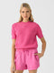 The Lucy Top features a textured waffle knit design, structured ribbing, and a classic cropped-sleeve silhouette, making it a versatile investment piece.