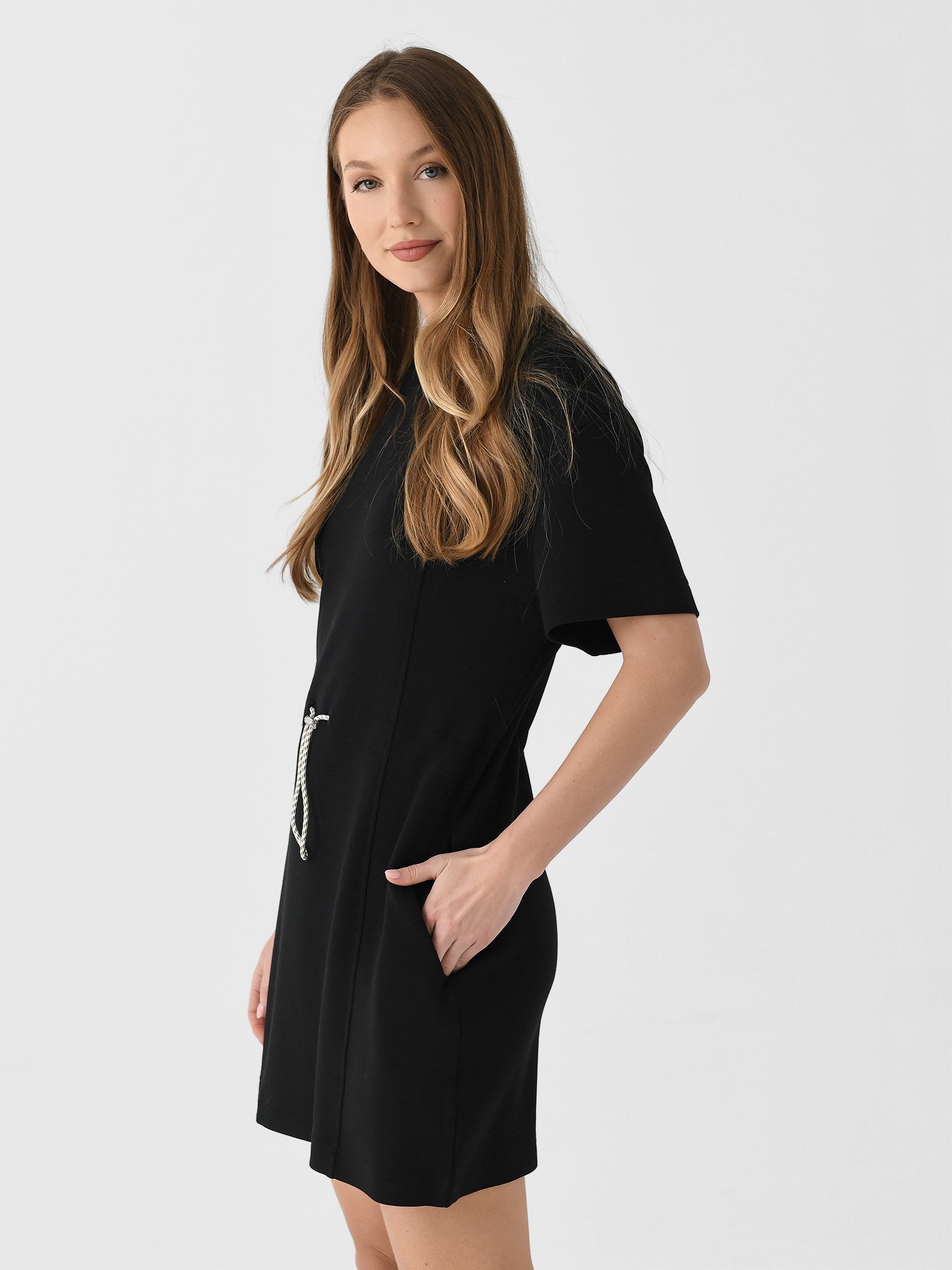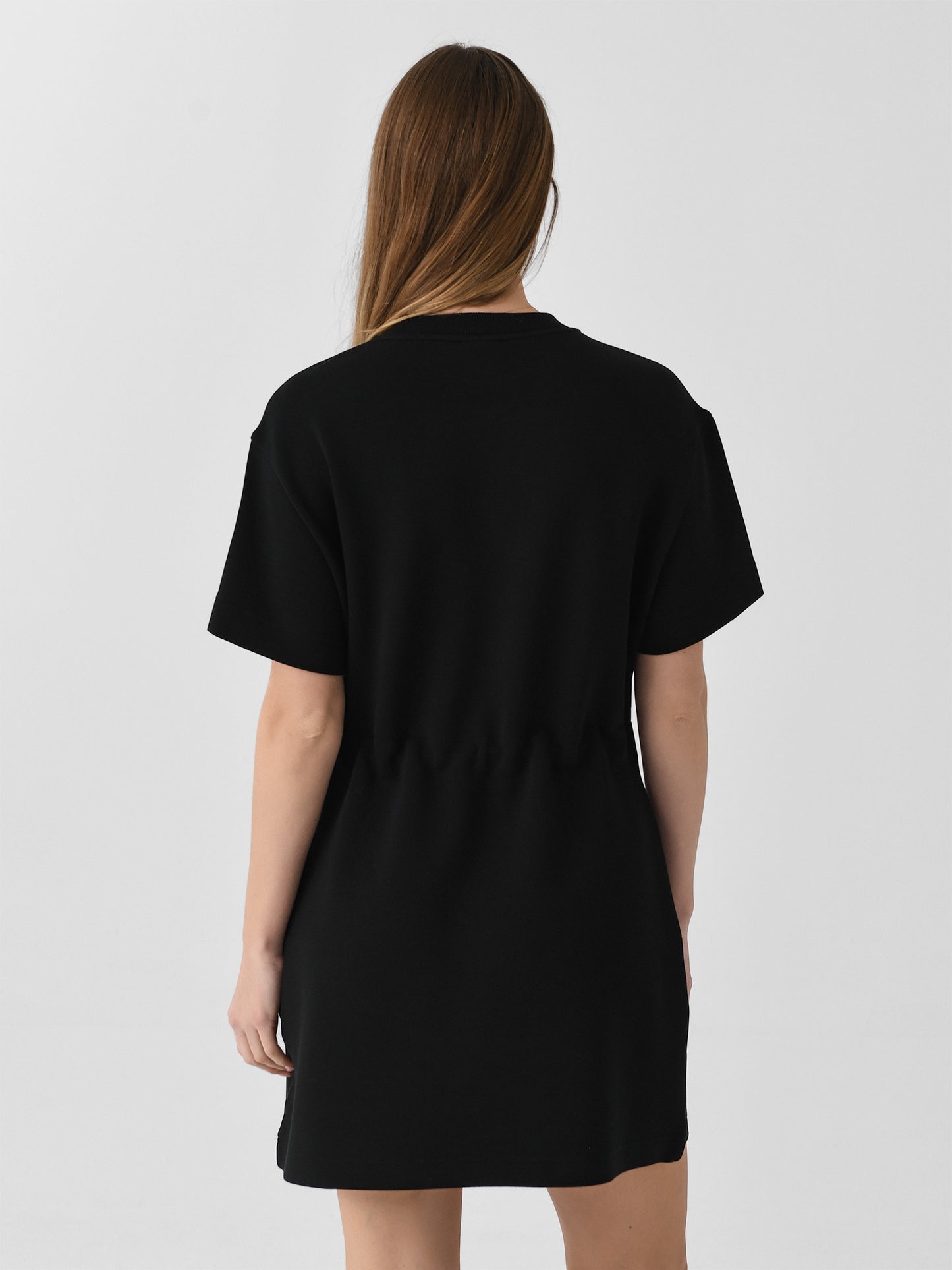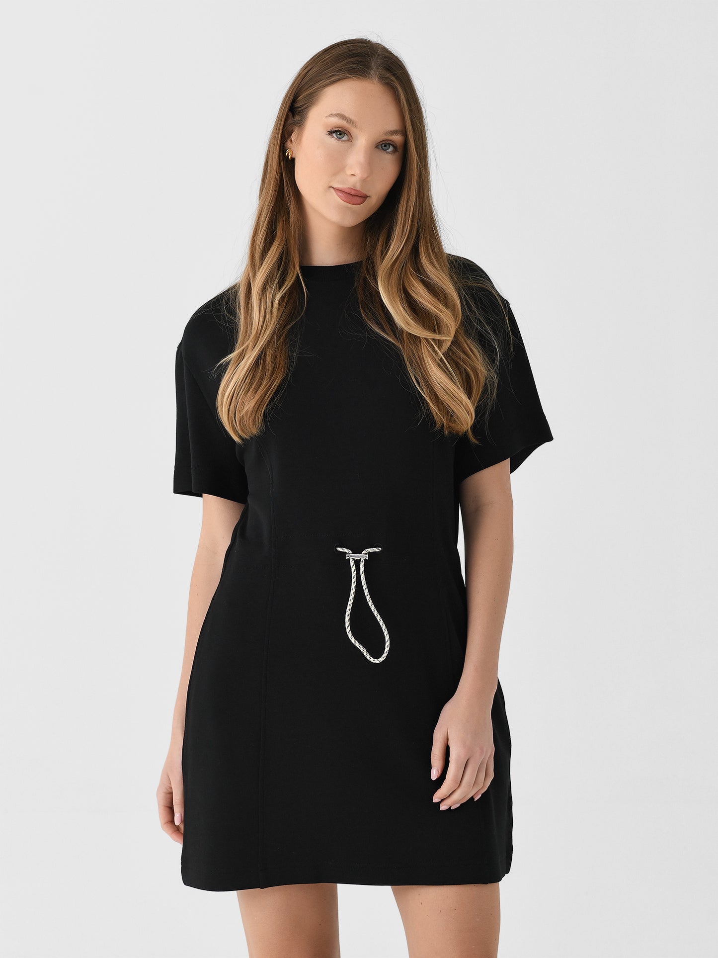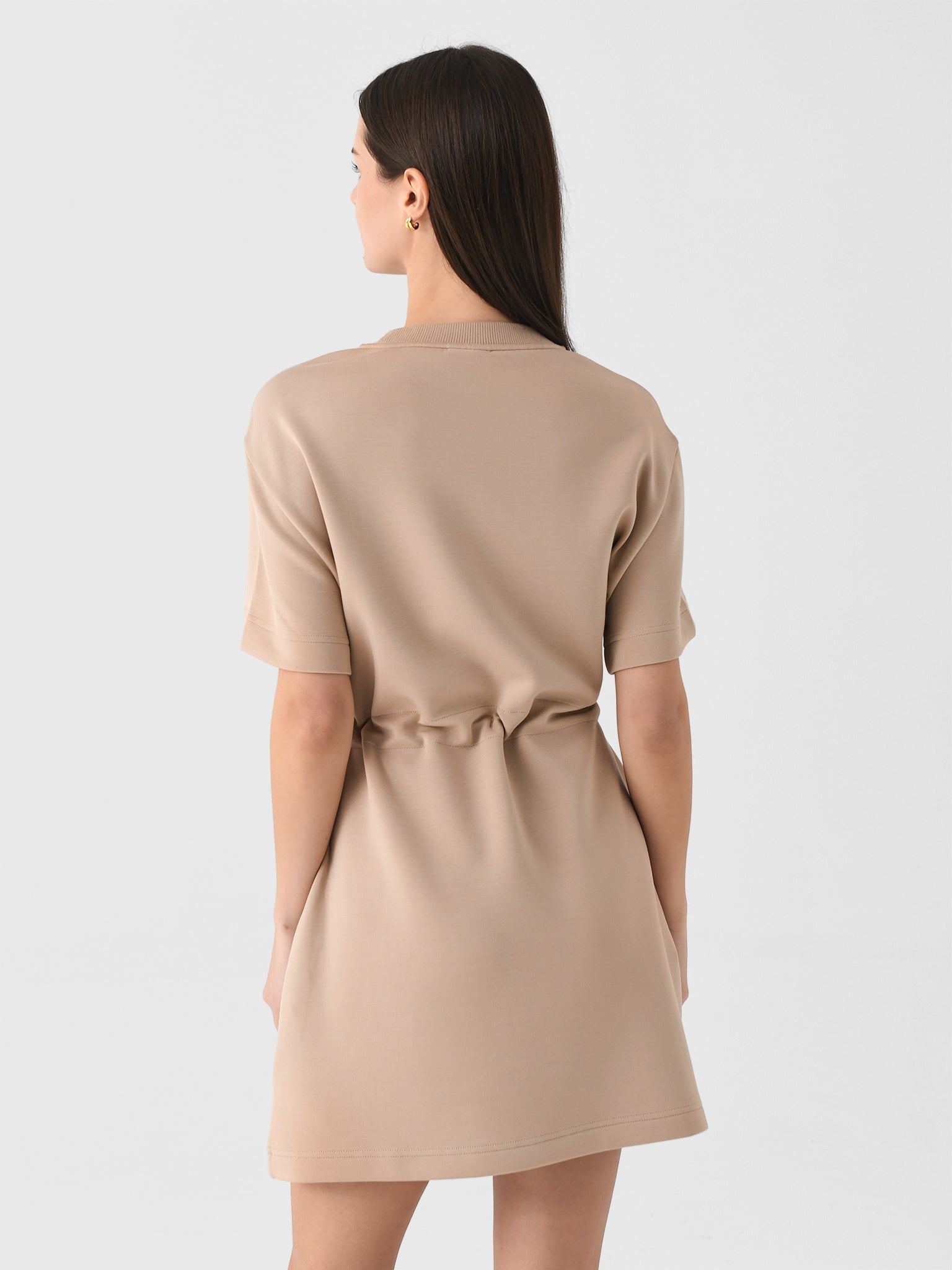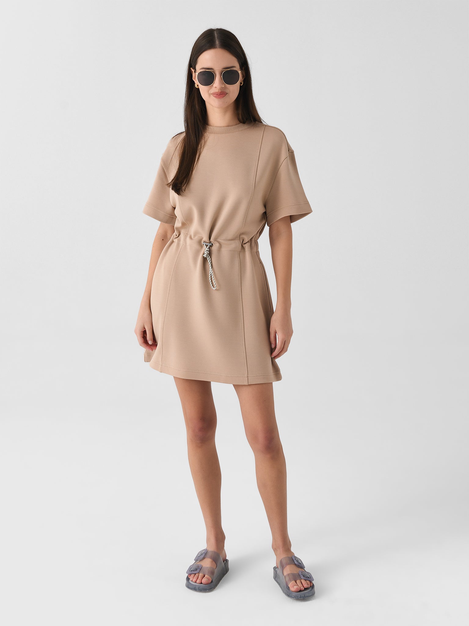 This dress, made from signature DoubleSoft® fabric, combines the classic crew neck and short sleeves look with a cinched waistline inspired by Varley's bestselling Freya sweatshirt.