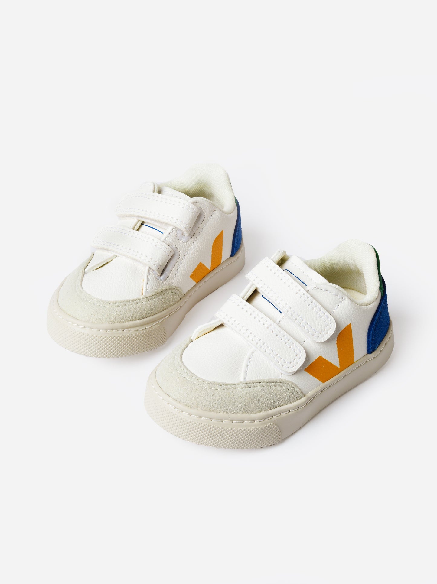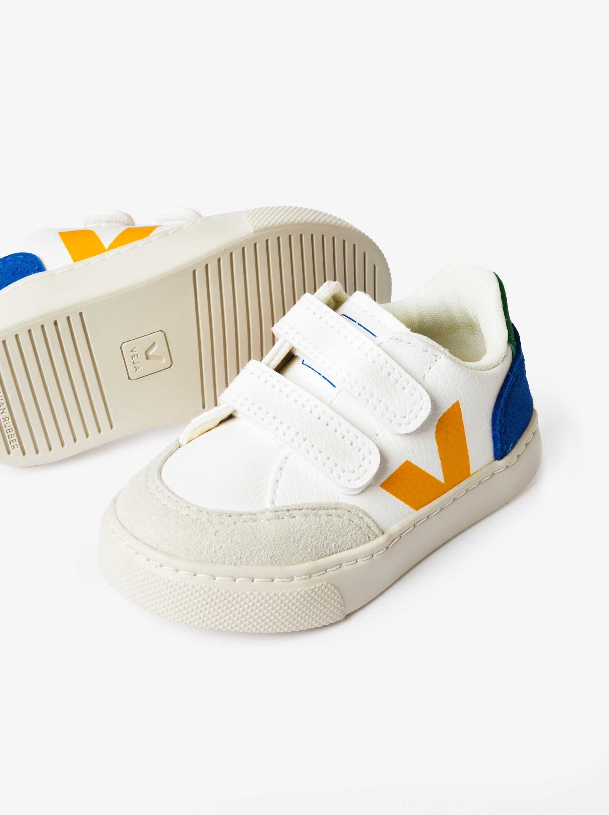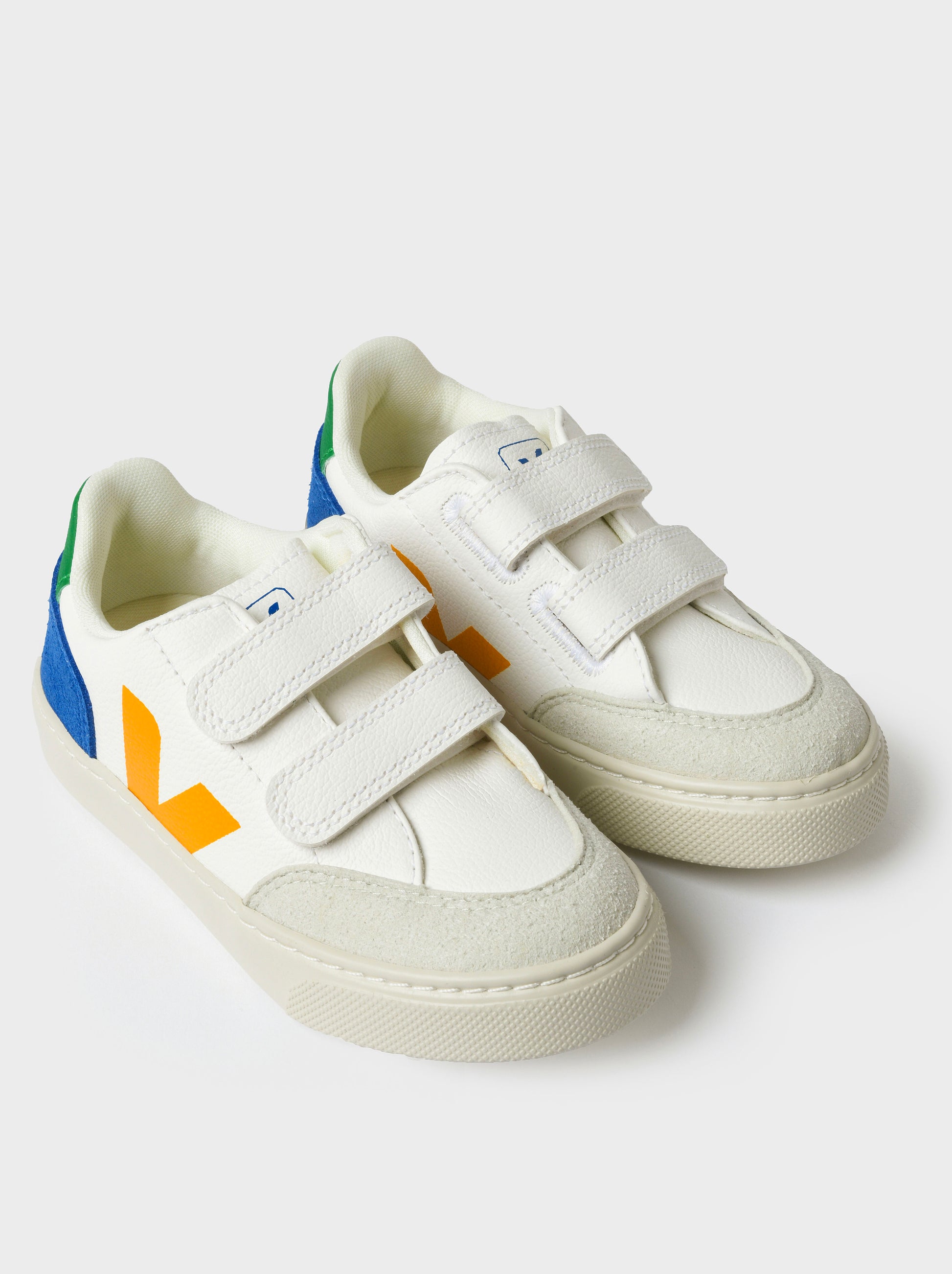 Velcro sneaker made from lightweight chromefree leather with colorful details.