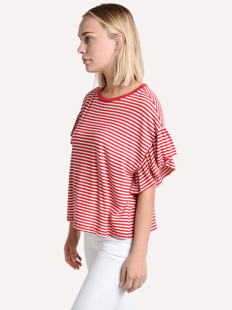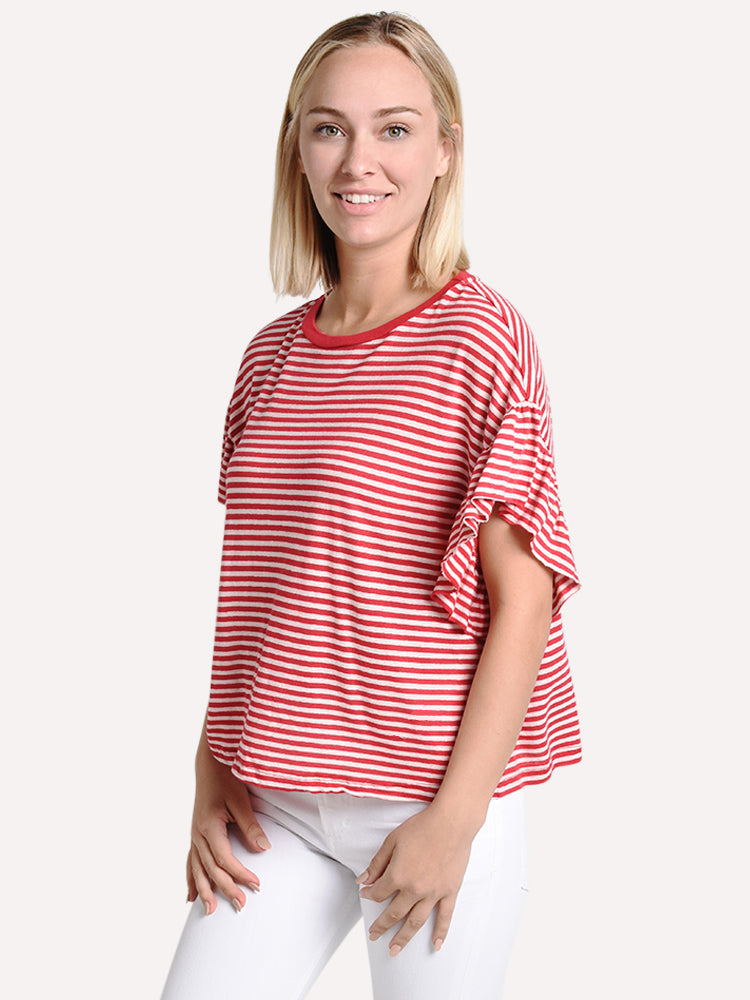 Women's Adaline Stripe Linen Knit Ruffle Sleeve Tee