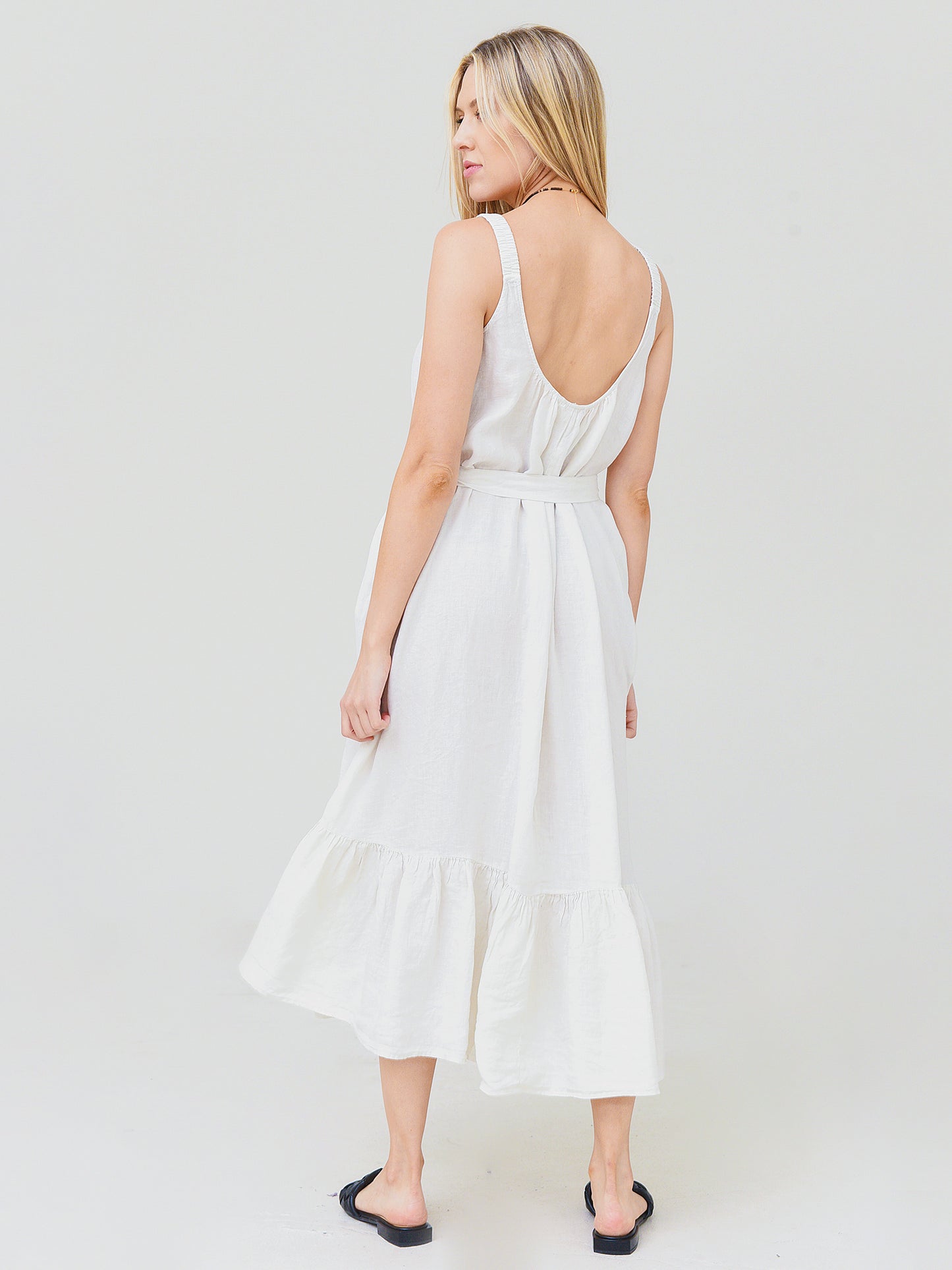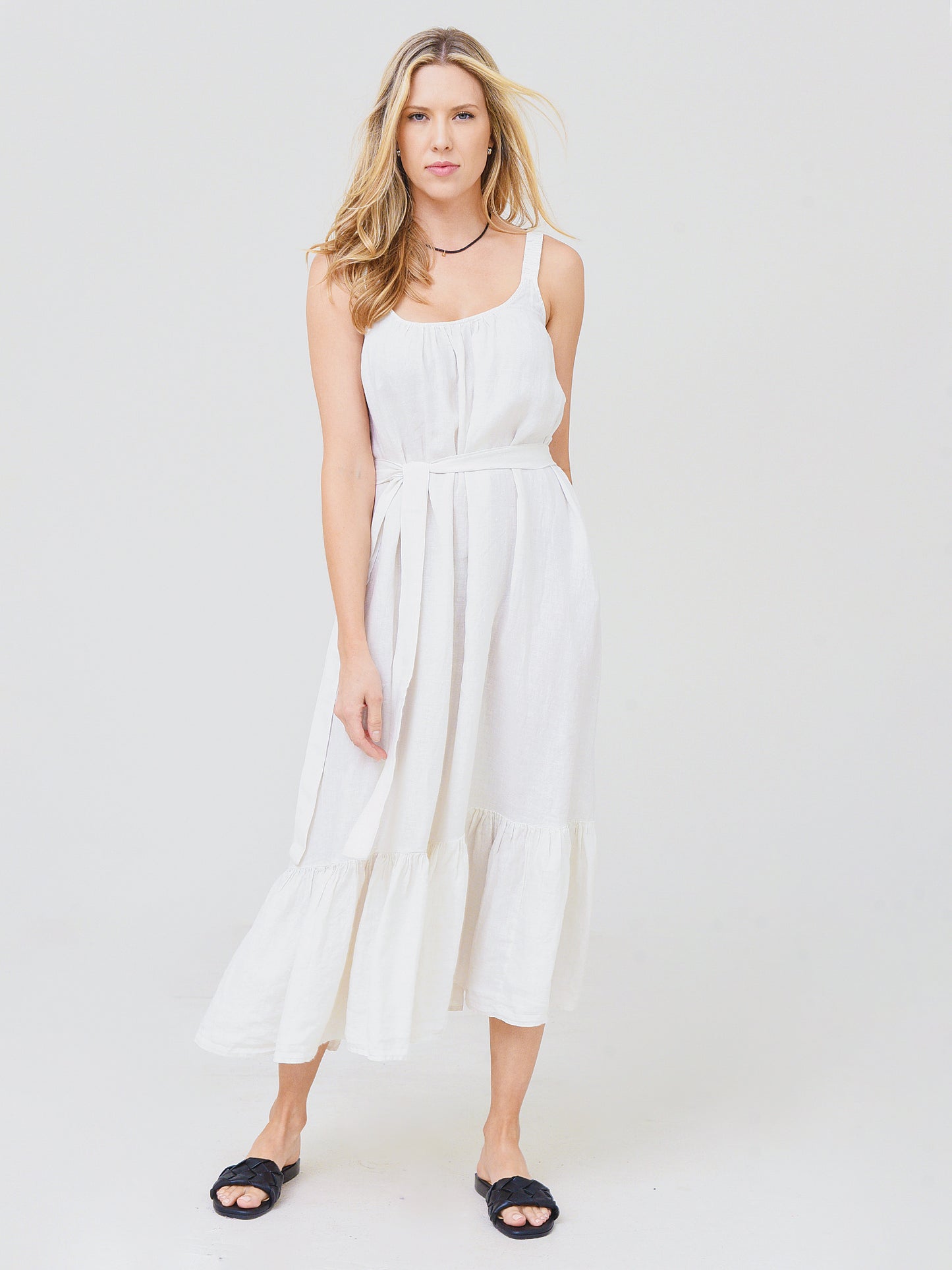 Maxi dress with scoop neckline in a breezy silhouette.