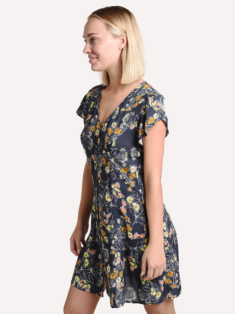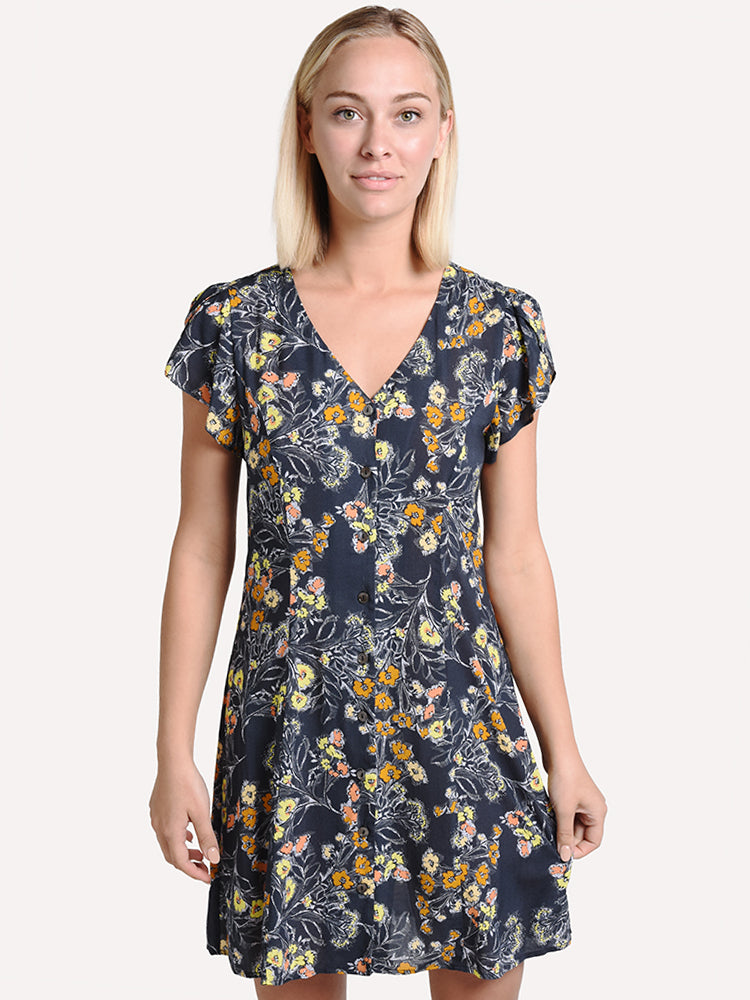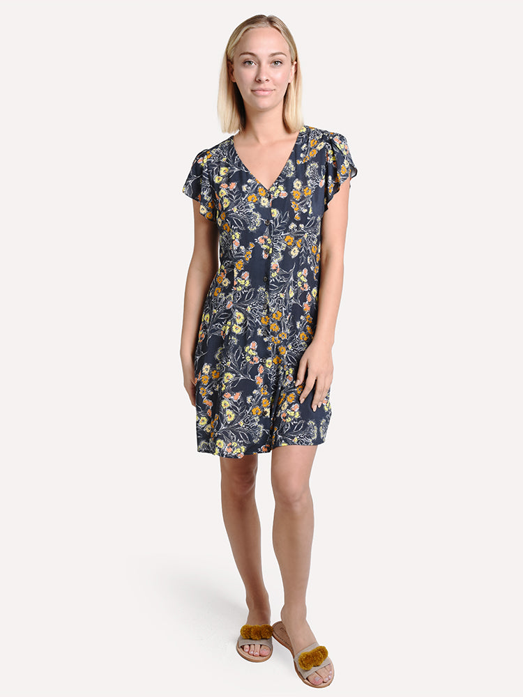 Women's Kirstan Floral Challis Short Sleeve Button-Up Dress