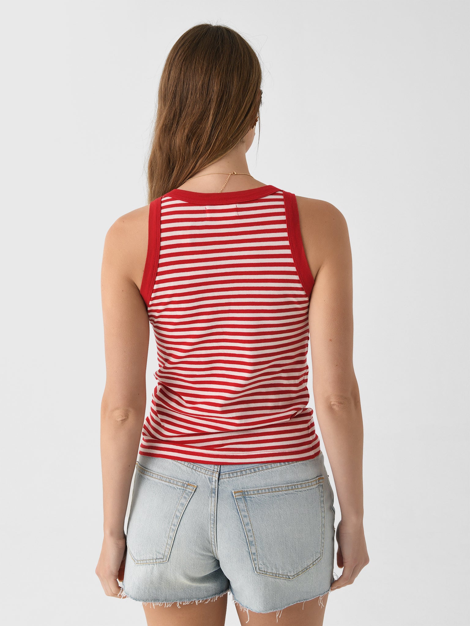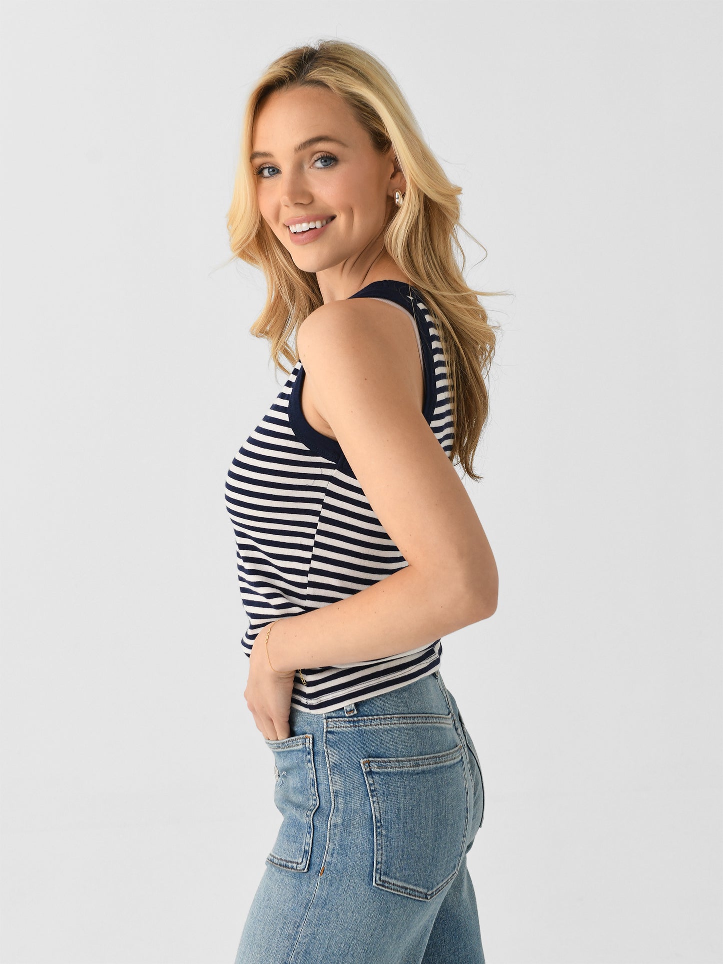 A fitted tank top made from soft jersey fabric with a timeless striped design.