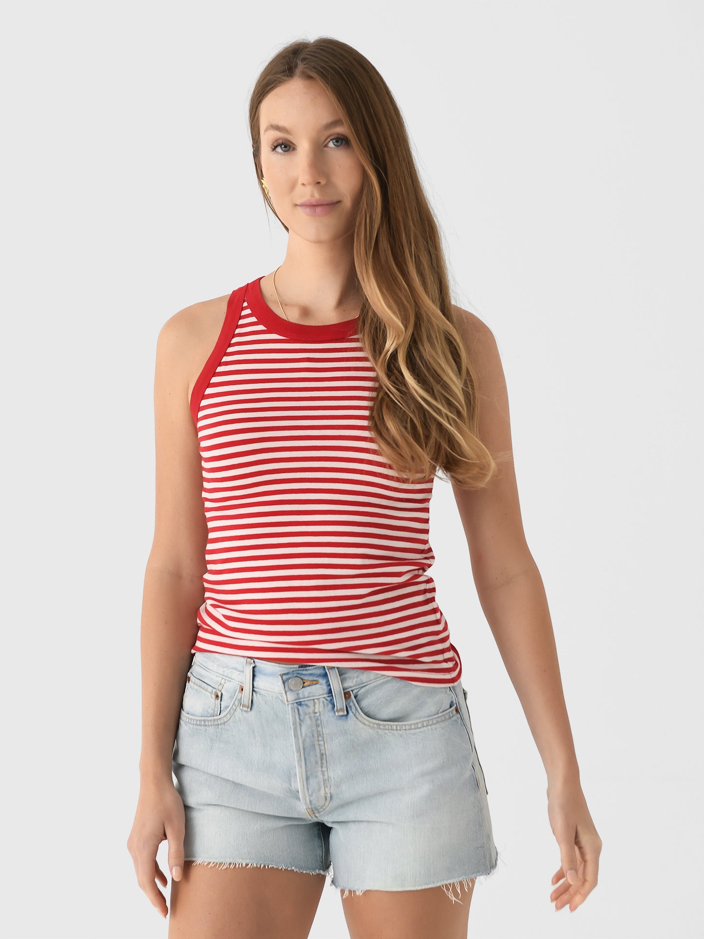 - Model is wearing size Small tank top.