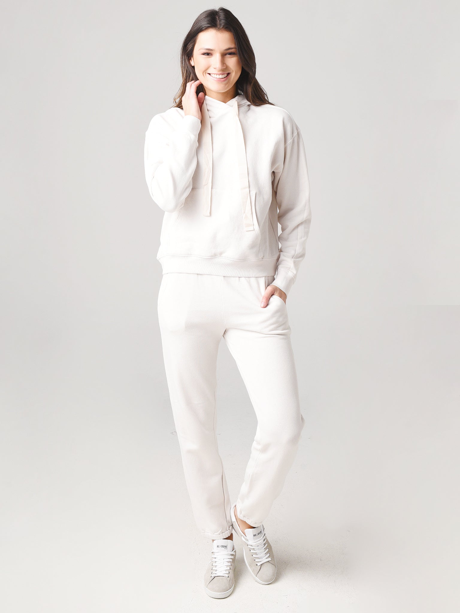 - Model is wearing size small hoodie and pant.