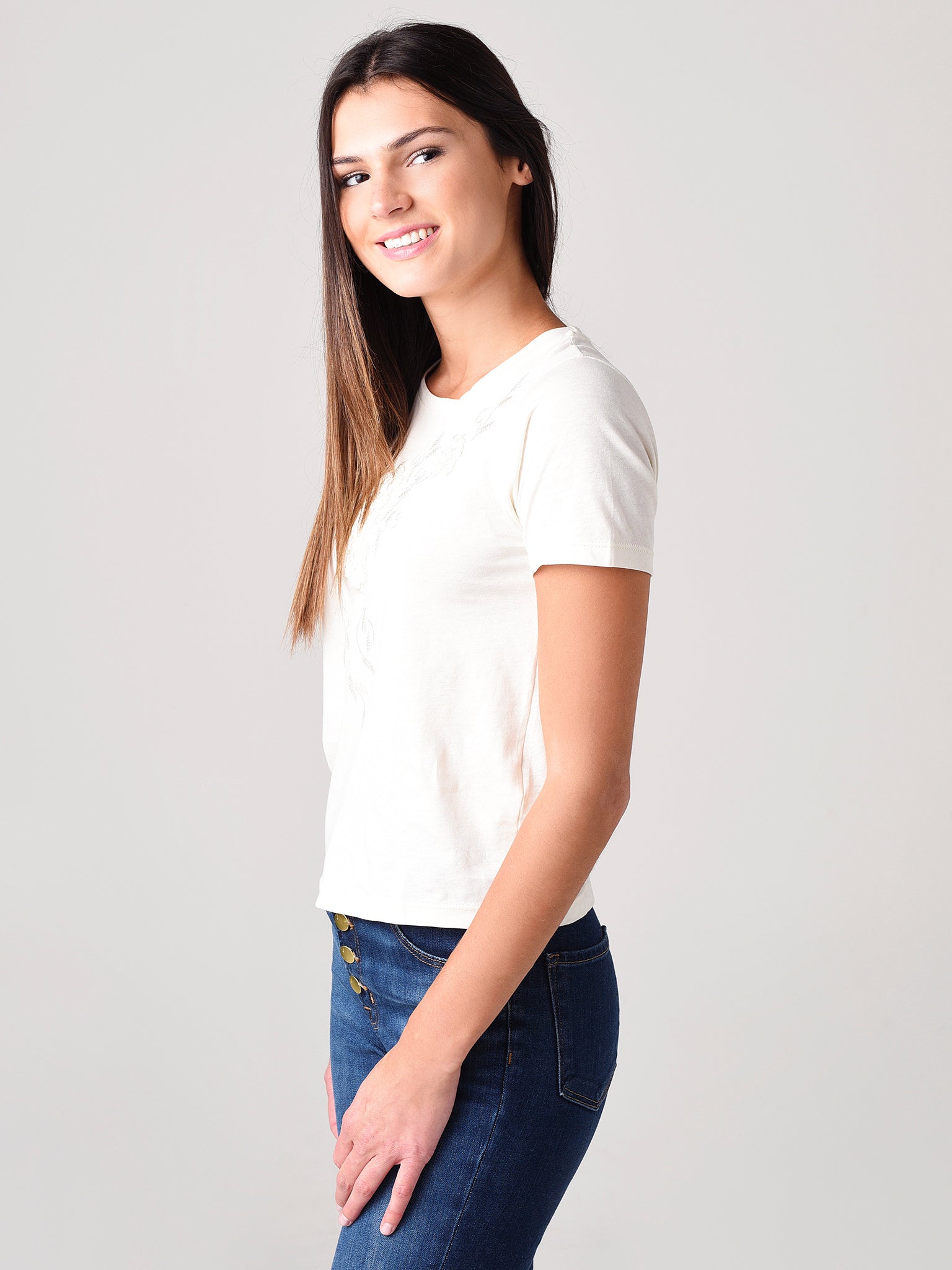 The Veroalfie Women's Remera Storni Tee is a tonal beaded tee ready to strike a conversation wherever you don it.