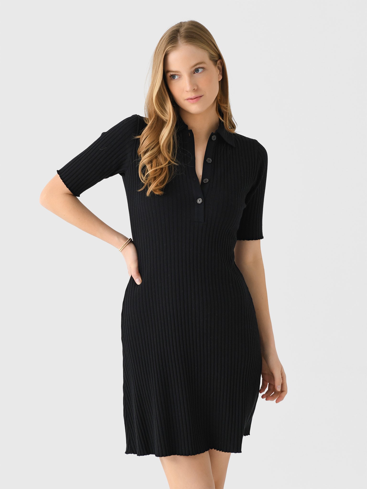 This polo dress is made from a soft ribbed cotton blend, it feels like your favorite sweater while offering a chic and polished look.