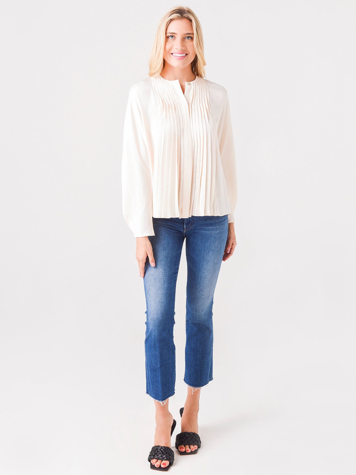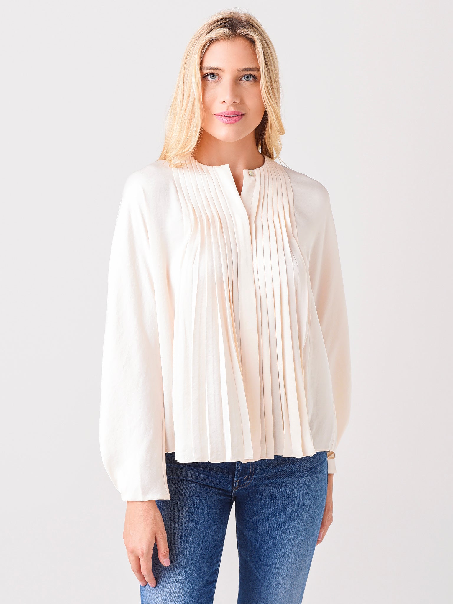 Vince Women's Pleated Paneled Long Sleeve Blouse